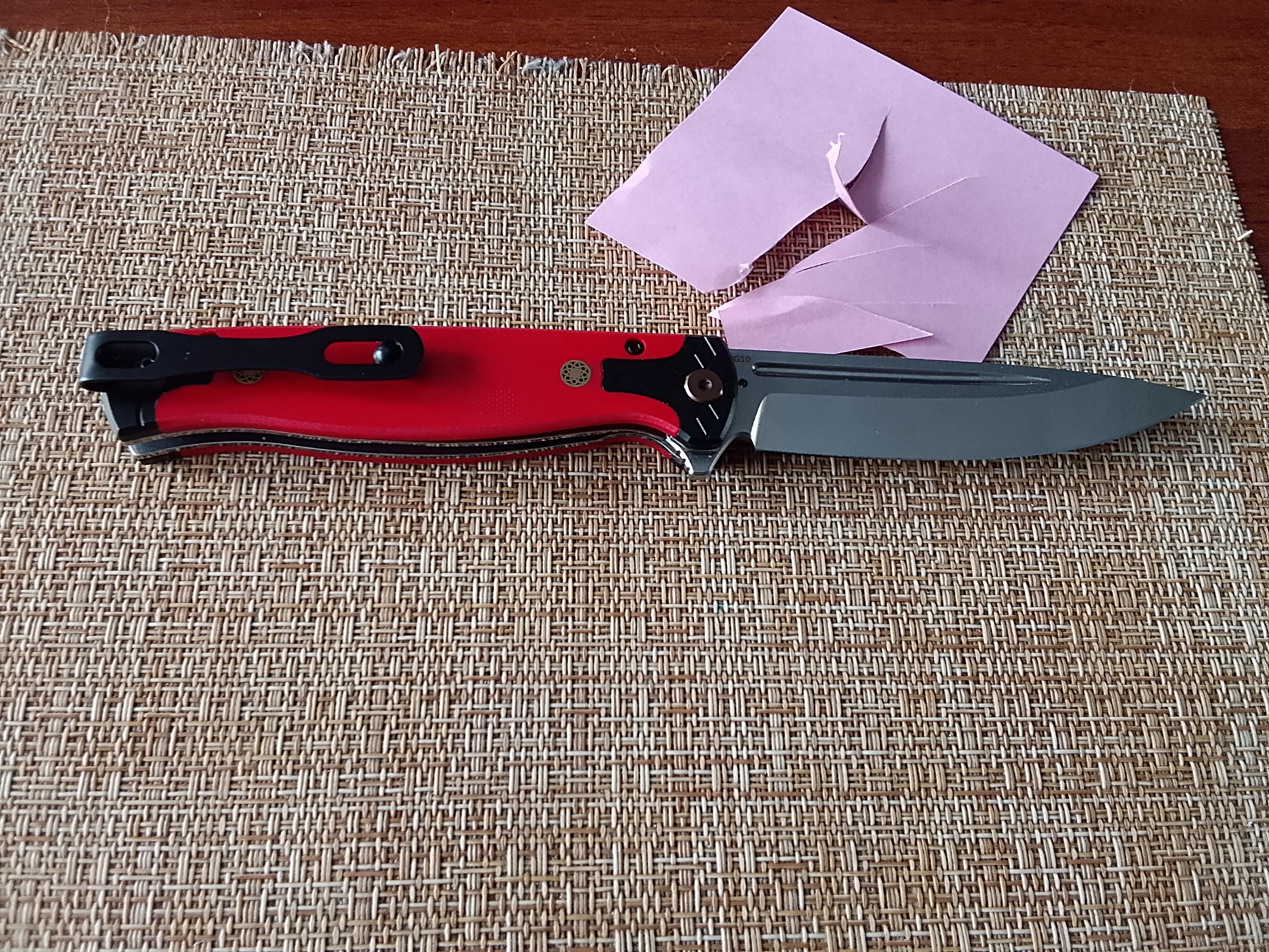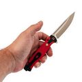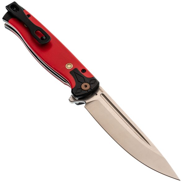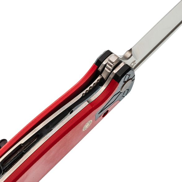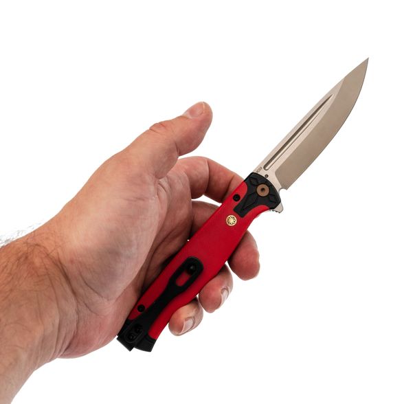 Рукоять из красного G10 не только выделяет модель визуально, но и обеспечивает комфортное и уверенное удержание. Цепкая текстура предотвращает скольжение, а форма корпуса продумана для удобного хвата даже при длительной эксплуатации. Хорс‑02 R - это сочетание практичности, фирменного подхода Steelclaw и доступной стоимости, делающее модель надежным выбором для повседневного применения.