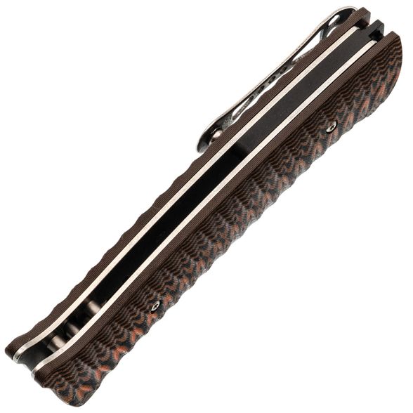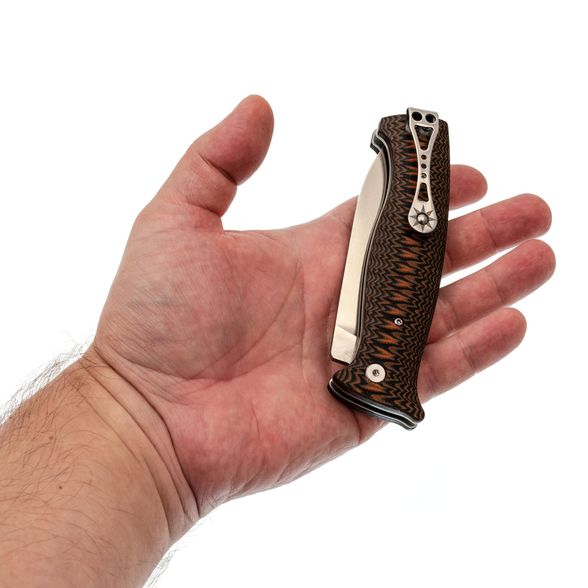 G10 (черно-оранжевый) - высокопрочный композитный материал с отличной текстурой. Стеклотекстолит обеспечивает отличное сцепление и устойчивость к износу, делая рукоять ножа прочной и долговечной.