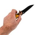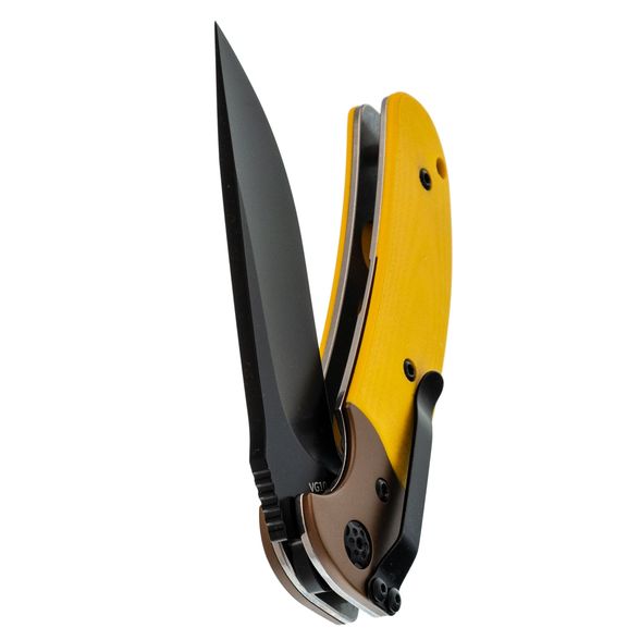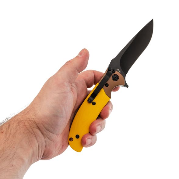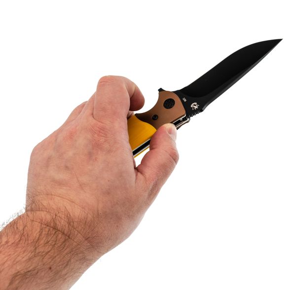 Профиль Drop-Point с прямыми спусками от обуха даёт понятный и контролируемый рез. Толстый обух добавляет уверенности при работе с плотными материалами. Клинок открывается флиппером - быстро и удобно одной рукой.