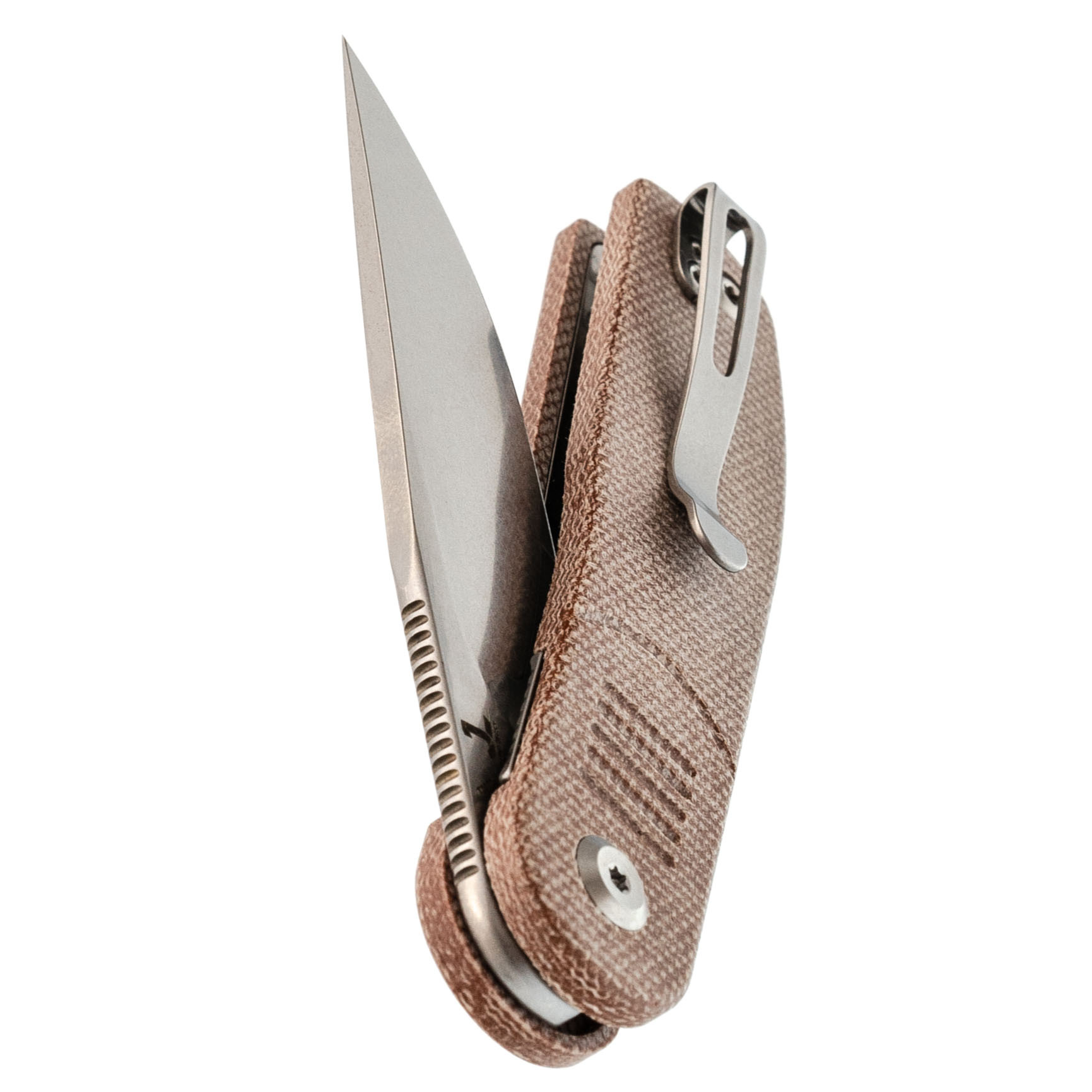 Эргономичная форма рукояти позволяет уверенно контролировать инструмент, а накладки из микарты сочетают лёгкость, прочность и цепкий хват. Глубокая посадка клипсы обеспечивает надёжное удержание в кармане и минимальную заметность при ношении.