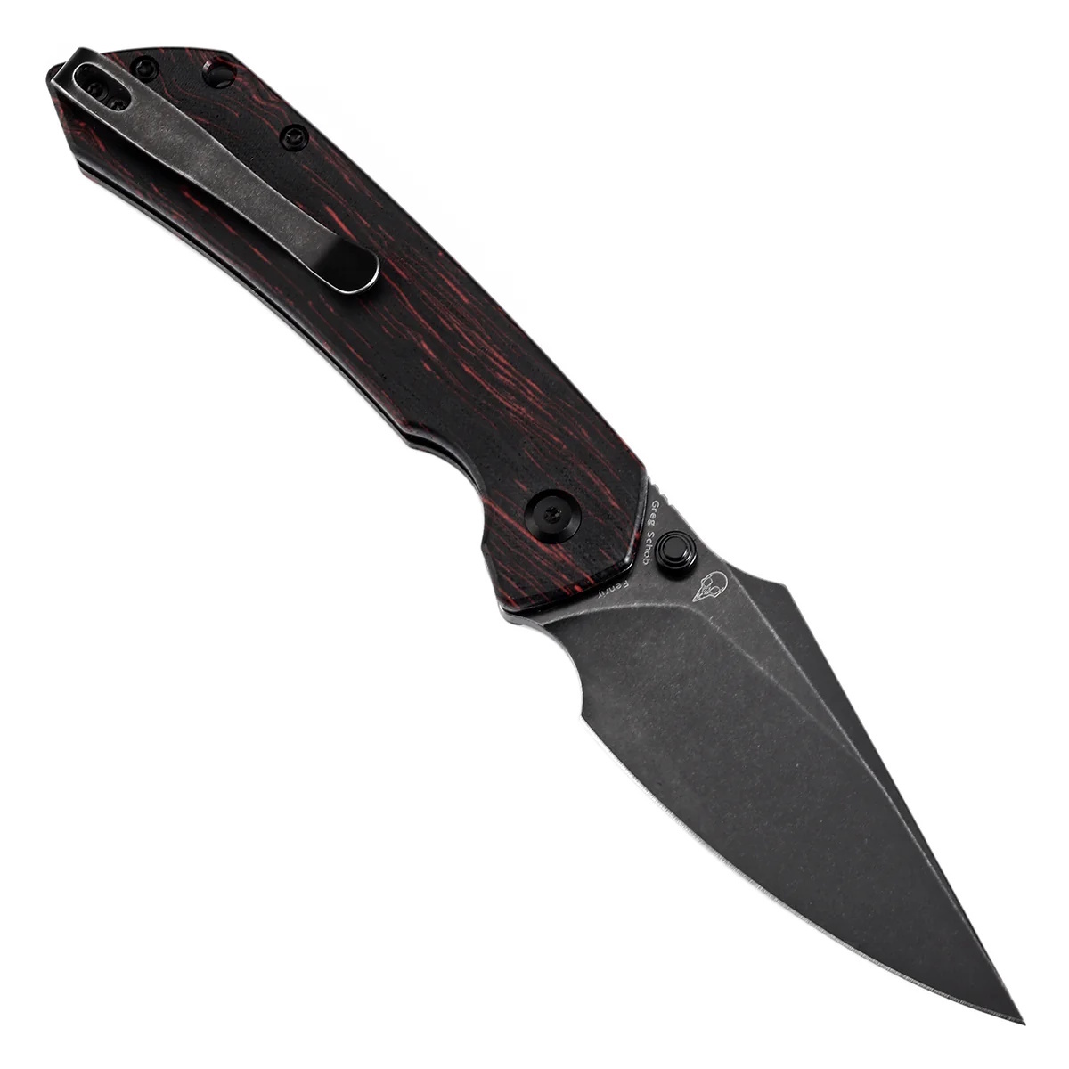 Чёрно-красная рукоять из G-mascus сочетает эргономику и визуальную выразительность. Текстурированная поверхность обеспечивает надёжный хват даже при влажных руках, а форма адаптирована под различные способы удержания. Материал устойчив к загрязнениям, легко очищается и не скользит. Геометрия рукояти продумана для стабильного контроля и комфорта при длительном использовании.
