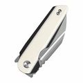 Рабочая часть выполнена в форме Sheepfoot с толщиной обуха 4 мм, что придаёт конструкции дополнительную прочность и устойчивость к нагрузкам. Поверхность обработана методом Satin, благодаря чему снижается отражение света и сохраняется аккуратный внешний вид. Сталь 14C28N обеспечивает стабильную режущую способность, а форма клинка способствует точному и контролируемому движению при работе с различными материалами.