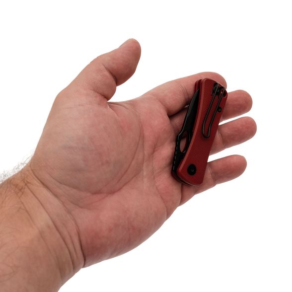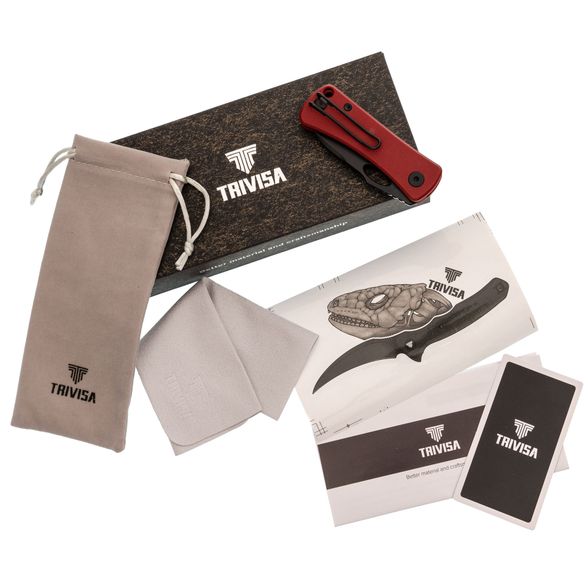 Trivisa Andromeda - это обновленная версия популярного складного ножа, которая привлекает внимание своим уникальным дизайном. Новая модель представлена в пурпурно-красном цвете Burgundy, что придает ножу стильный и яркий внешний вид. Клинок с черным покрытием контрастирует с рукоятью, обеспечивая эстетичный внешний вид, а также предотвращает блики на лезвии.