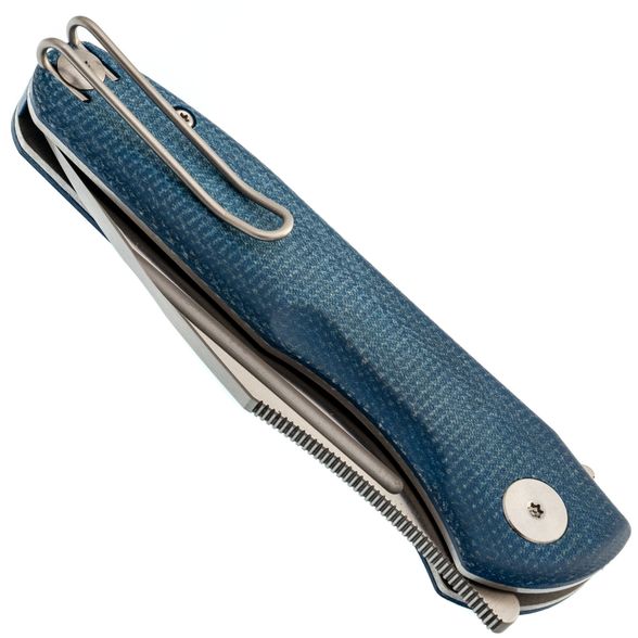 Нож оснащён проволочной клипсой глубокой посадки - редкая в наше время конструкция, которая не наминает руку при работе и легко садится на карман.