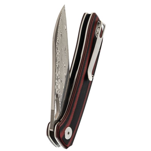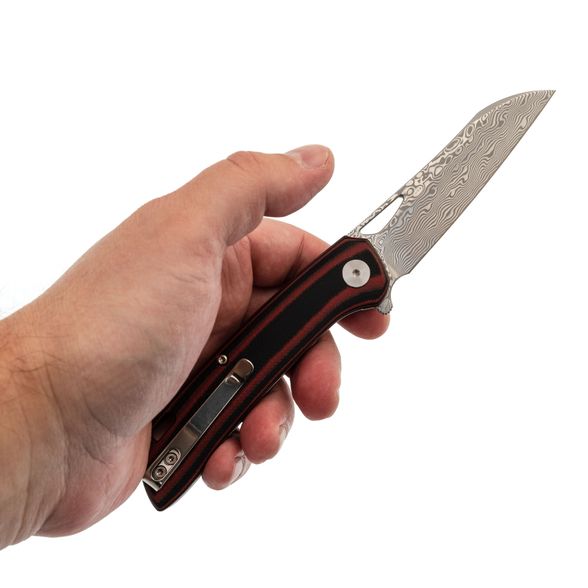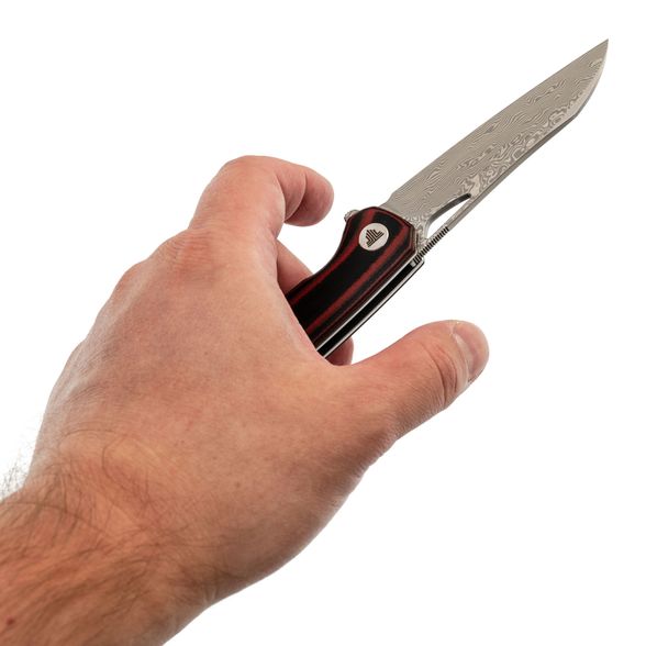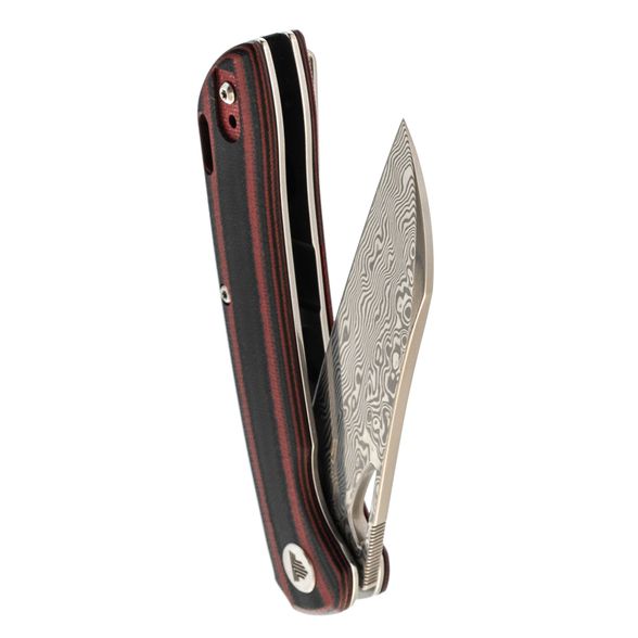 Клинок Trivisa Aries выполнен из дамасской стали, состоящей из 110 слоёв. Хотя дамасская сталь не является самой производительной в плане твердости и долгого удержания режущей кромки, она легко точится, обладает высокой устойчивостью к коррозии и имеет отличную ударную вязкость. Кроме того, уникальный узор дамасской стали придает ножу неповторимый внешний вид, который невозможно спутать ни с чем другим. Форма клинка Sheepsfoot идеально подходит для городских условий: она удобна для открытия коробок и упаковок, резки на поверхности и выполнения точных работ кончиком ножа.