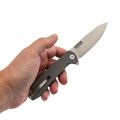 Рукоять ножа Trivisa Columba обладает нейтральной изогнутой формой, которая идеально адаптируется под любую ладонь, обеспечивая максимальный комфорт во время использования. Подпальцевая выемка и плавник флиппера не только повышают эргономические качества ножа, но и повышают безопасность при работе, предотвращая случайное соскальзывание на режущую кромку. Накладки из микарты, прочного полимерного материала с бархатистой текстурой, обеспечивают отличное сцепление даже в условиях повышенной влажности или при низких температурах, делая Trivisa Columba надежным спутником в любых условиях.