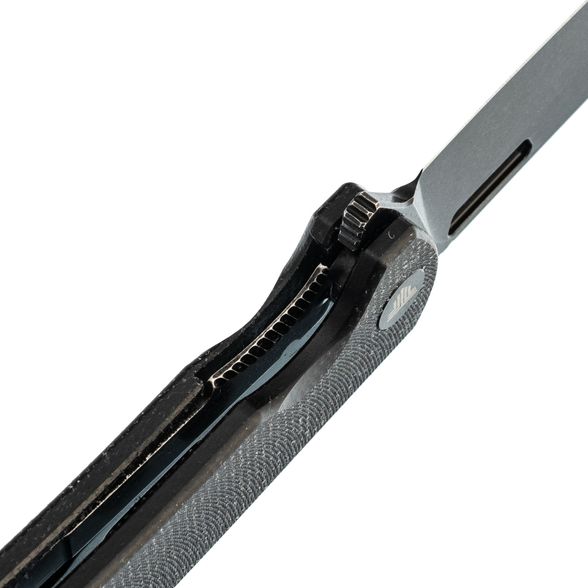 Рукоять ножа Trivisa Columba имеет удобную изогнутую форму, подходящую для любой ладони, обеспечивая комфорт во время использования. Подпальцевая выемка и плавник флиппера повышают эргономику и безопасность работы. Накладки из микарты обеспечивают отличное сцепление даже в условиях повышенной влажности или при низких температурах, делая Trivisa Columba надежным спутником в любых условиях.