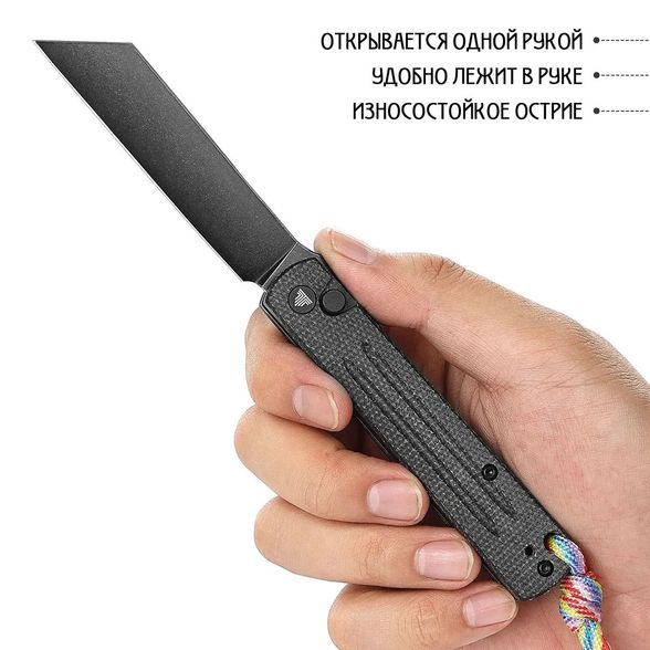 Рукоять из микарты выполнена в темном оттенке и обладает выраженной текстурой, обеспечивающей уверенный контроль при удержании. Материал устойчив к загрязнениям и сохраняет форму при длительном использовании. Конструкция удобно ложится в ладонь, не вызывает усталости и позволяет точно контролировать рабочее положение. Визуально модель остается сдержанной, но функциональной - готовой к ежедневной работе.