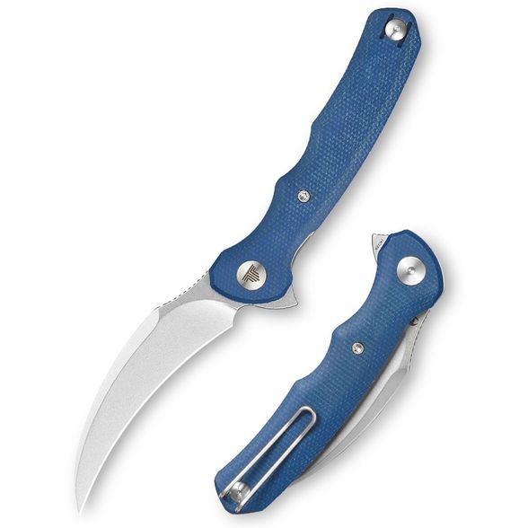 Синяя рукоять из микарты - это сочетание практичности и выразительного дизайна. Материал обеспечивает уверенный хват, не скользит в руке и сохраняет устойчивость к загрязнениям. Контуры рукояти адаптированы под естественное положение ладони, что повышает комфорт при длительном использовании. Флиппер обеспечивает быстрый доступ к рабочей части, а реверсивная карманная клипса с посадкой Tip-Up позволяет удобно закрепить изделие вне зоны видимости. Визуально модель остается сдержанной, но узнаваемой - готовой к повседневной работе.