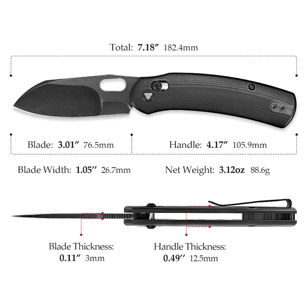 Рукоять из черного G10 - это сочетание эргономики и визуальной строгости. Материал обеспечивает надежный хват, не скользит в руке и сохраняет устойчивость к загрязнениям. Контуры рукояти адаптированы под естественное положение ладони, что повышает удобство при длительном использовании. Карманная клипса интегрирована аккуратно, не мешает при переноске и обеспечивает быстрый доступ к инструменту. Визуально модель остается сдержанной, но выразительной - готовой к ежедневной работе без лишних деталей.