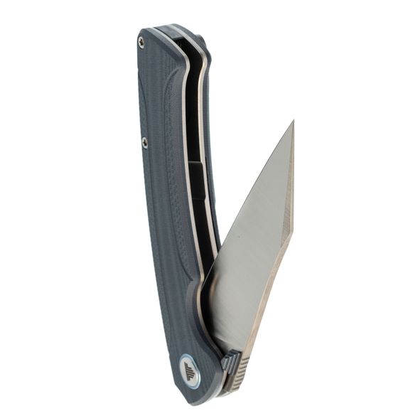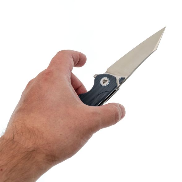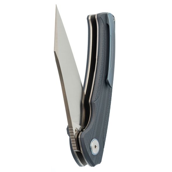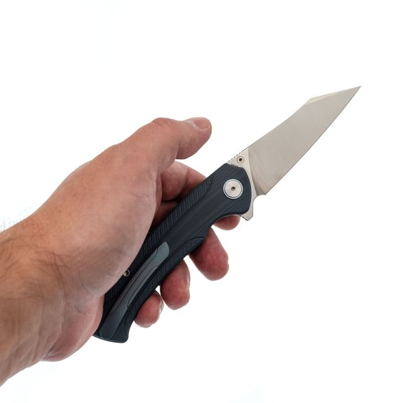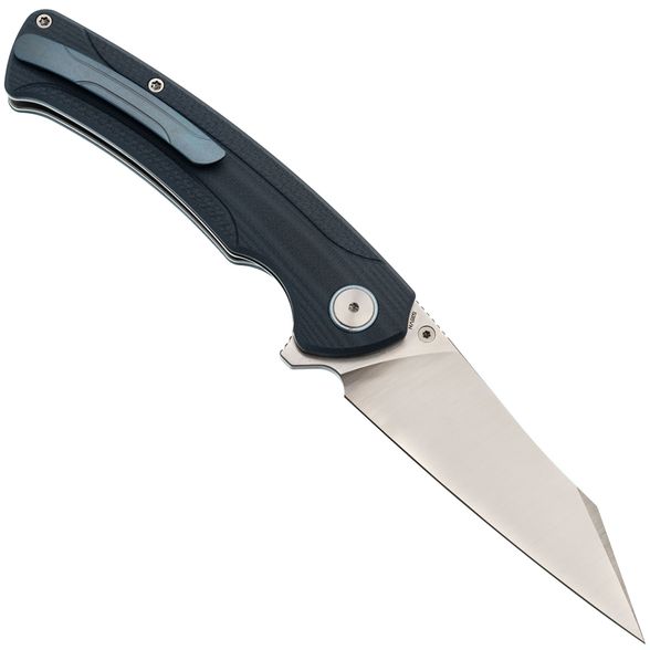 Рукоять имеет изогнутую форму, за счет чего естественно повторяет контуры ладони и хорошо лежит в руке. Нож с подпальцевой выемкой обеспечивает надежный захват и предотвращает скольжение руки на лезвие, делая использование ножа еще более безопасным. Накладки из стеклотекстолита G10 не только прочные, но и устойчивы к воздействию воды, ударам и перепадам температур. Этот синтетический материал отлично подходит для создания рукояток ножей благодаря своей долговечности и стабильности. В результате получается эргономичная конструкция, которая позволяет комфортно работать с инструментом даже при продолжительном использовании.Характеристики ножа включают в себя титановый шпенек необычной формы, выполненный в виде пирамидки, а также титановую цельнофрезерованную клипсу.