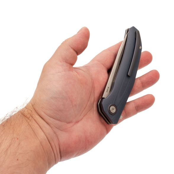 Рукоять Phoenix проста и эргономична, имеет пухлый профиль и удобную изогнутую форму, что обеспечивает комфортное и надежное удержание. Материал рукояти - стеклотекстолит G10, известный своей прочностью и устойчивостью к воздействию окружающей среды. Этот материал позволяет ножу оставаться надежным помощником в любых условиях. Рукоять оснащена клипсой из титана, что обеспечивает удобное ношение и надежное крепление на кармане. Phoenix - это отличный выбор для тех, кто ценит функциональность, качество и практичность.