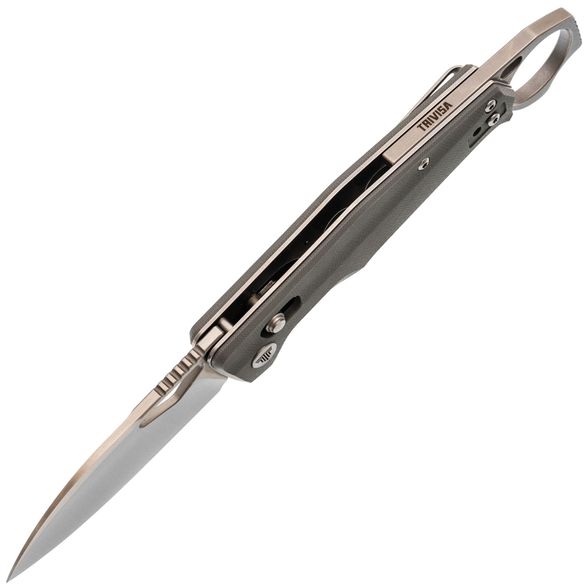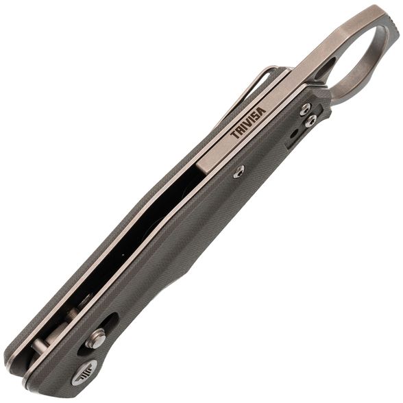 Trivisa Sagitta - это складной нож, чьё название с латинского переводится как "стрела", что отсылает к одноимённому созвездию. Модель выделяется на фоне других складных ножей благодаря своей уникальной конструкции. Sagitta оснащён керамбитным кольцом, что довольно редко встречается в ножах с классической геометрией. Несмотря на компактный клинок, рукоять ножа имеет полноразмерные габариты, обеспечивая удобный и надёжный хват.
