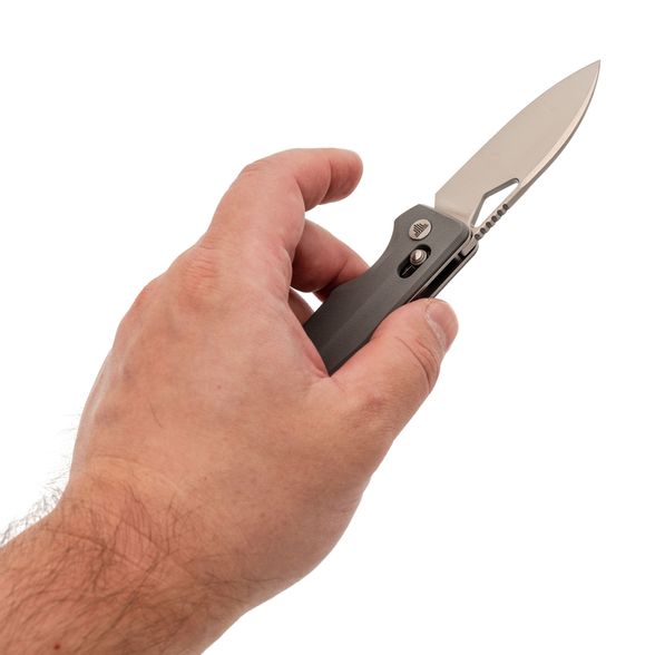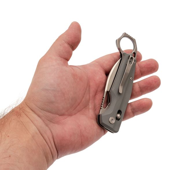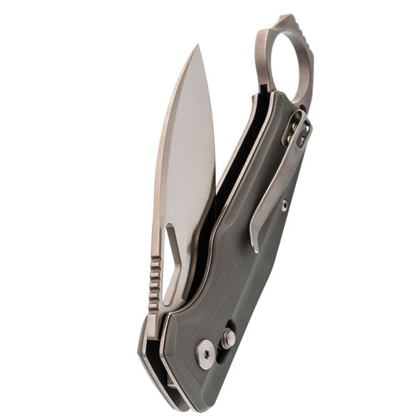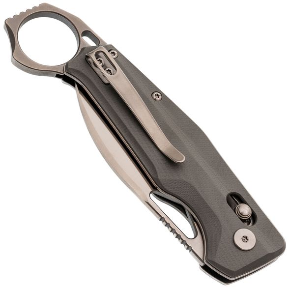 Рукоять Sagitta сочетает в себе нержавеющую сталь и накладки из G10, обеспечивая оптимальный баланс прочности и комфорта. Нержавеющая сталь служит основой, а накладки G10 улучшают сцепление и удобство при удержании. Керамбитное кольцо позволяет использовать различные хватки, обеспечивая дополнительный контроль и безопасность. Замок Axis-Lock гарантирует надёжную фиксацию клинка как в открытом положении а так же позволяет безопасно складывать нож. Наличие переставляемой клипсы позволяет удобно носить нож в разных позициях.