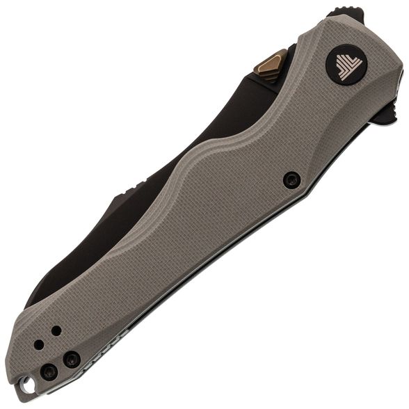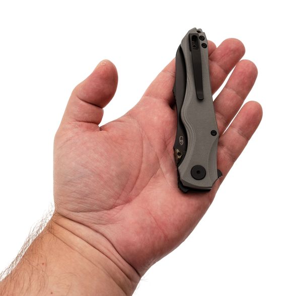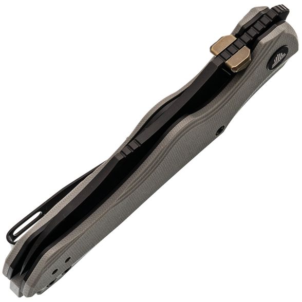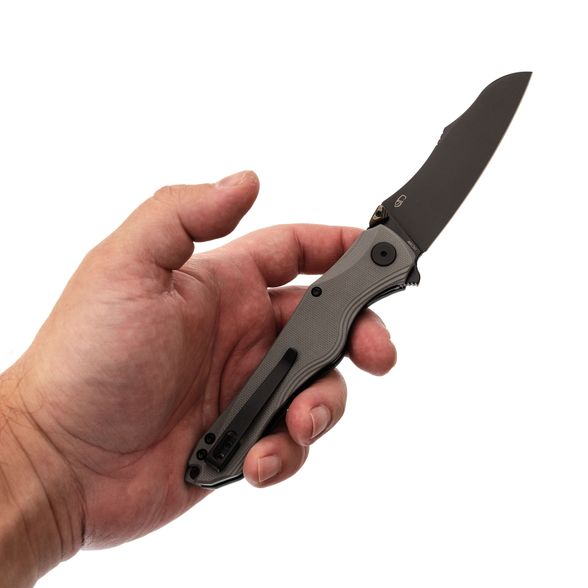 Рукоять Triton имеет необычную вьющуюся форму и изготовлена из стеклотекстолита G10, известного своей прочностью и устойчивостью к воздействию окружающей среды. Накладки рукояти имеют редкий для ножей серый цвет, что делает дизайн еще более интересным. Нож оснащен переставляемой клипсой, позволяющей удобно носить его на кармане или других элементах одежды, что делает его отличным выбором для повседневного ношения.