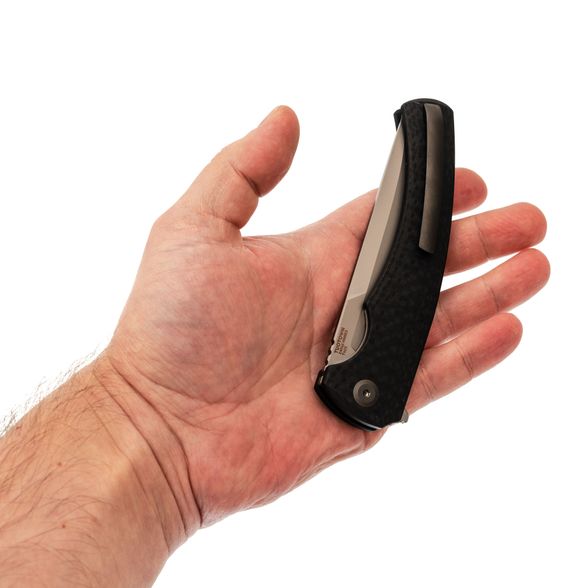 Рукоять Canyon собрана с прицелом на комфорт. Ладонь ложится естественно, а подпальцевая выемка помогает удерживать контроль при нагрузке. Клипса обеспечивает удобное ношение - нож всегда рядом, но не мешает. Canyon не требует привыкания: он просто делает то, что должен, и делает это хорошо.