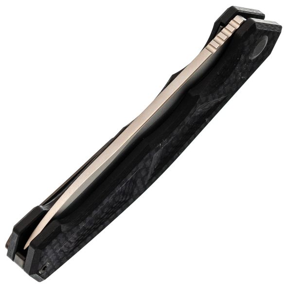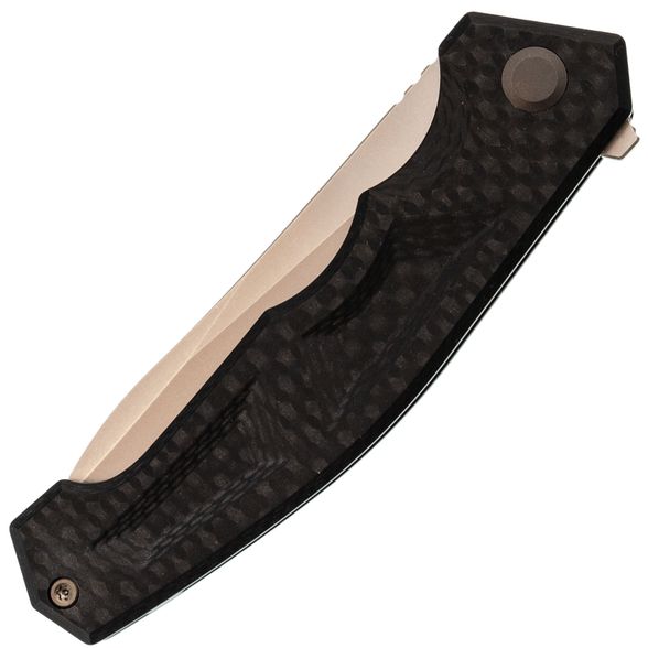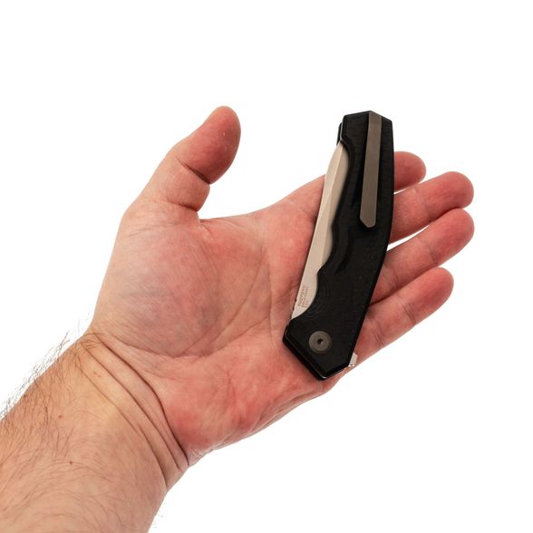 - Carbon G10 - карбон, чередующийся с G10: прочный и лёгкий, не боится влаги, цепко ощущается в руке и при этом выглядит собранно, даже немного “делово”.