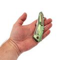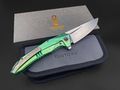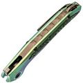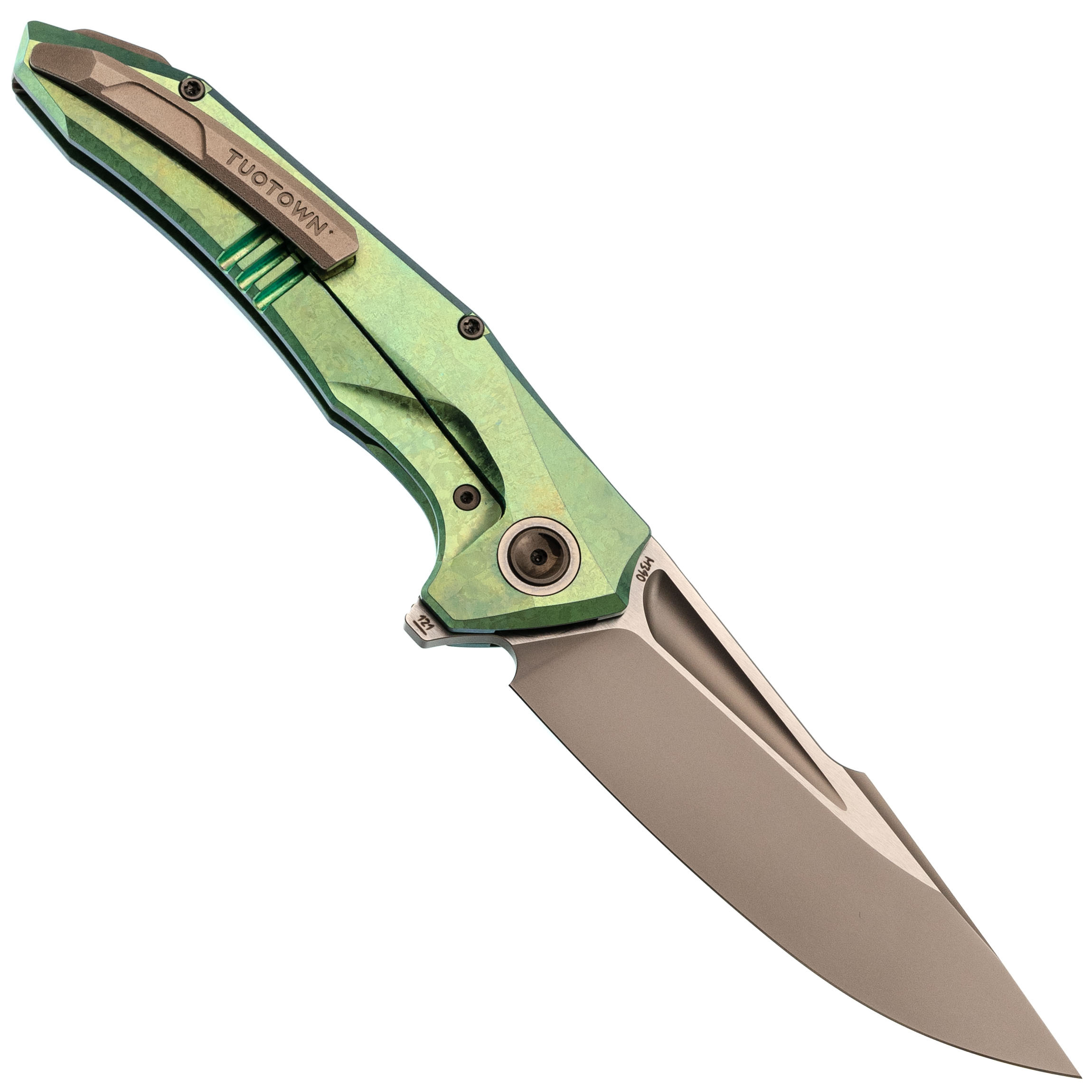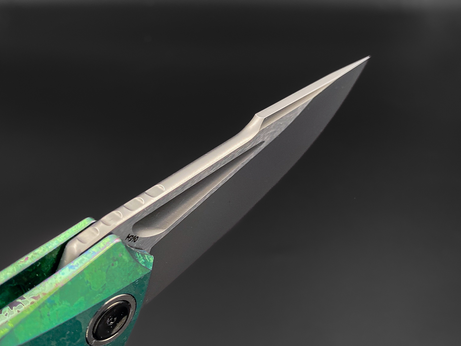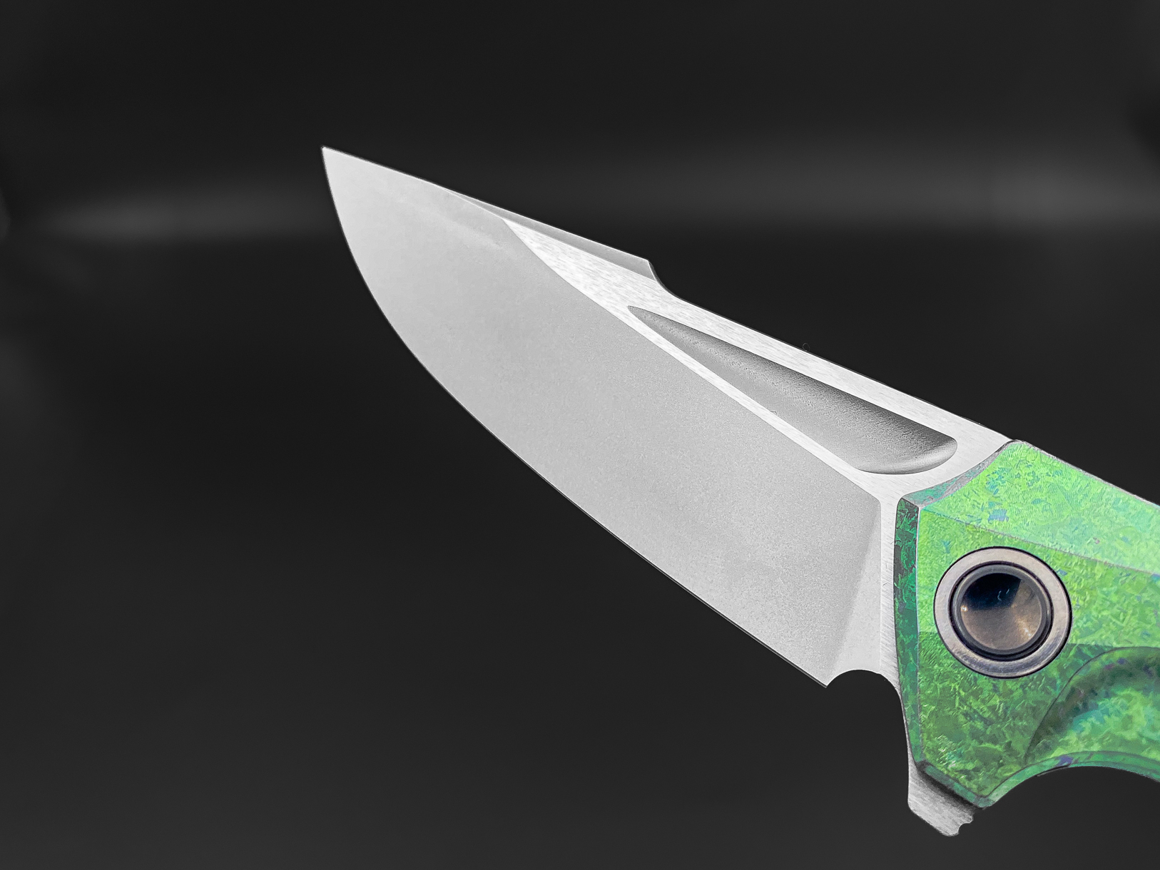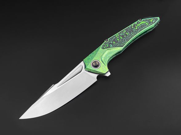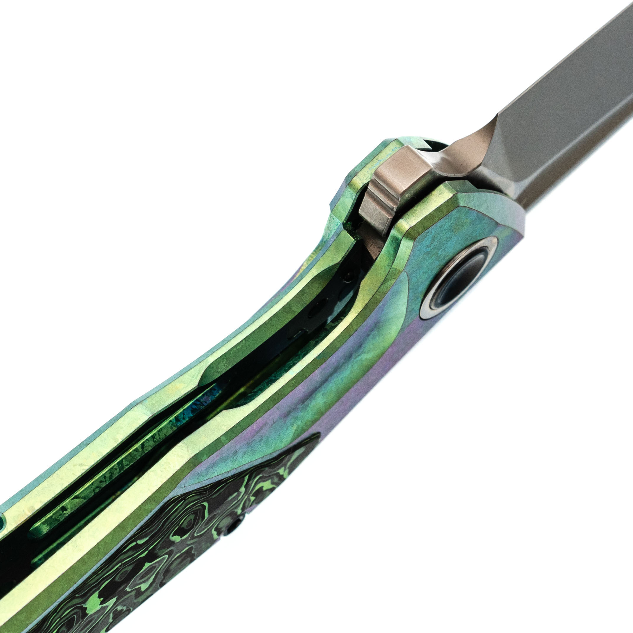 Рукоять из анодированного зелёного титана не только красива, но и функциональна. Эргономика продумана - изгиб ложится в ладонь естественно, упор под палец гарантирует уверенный хват. Клипса выполнена из титана, цельнофрезерованная, прочная. Отверстие под темляк добавляет практичности. Guerrero объединяет эстетику и надёжность - редкое сочетание, которое ценят знатоки.