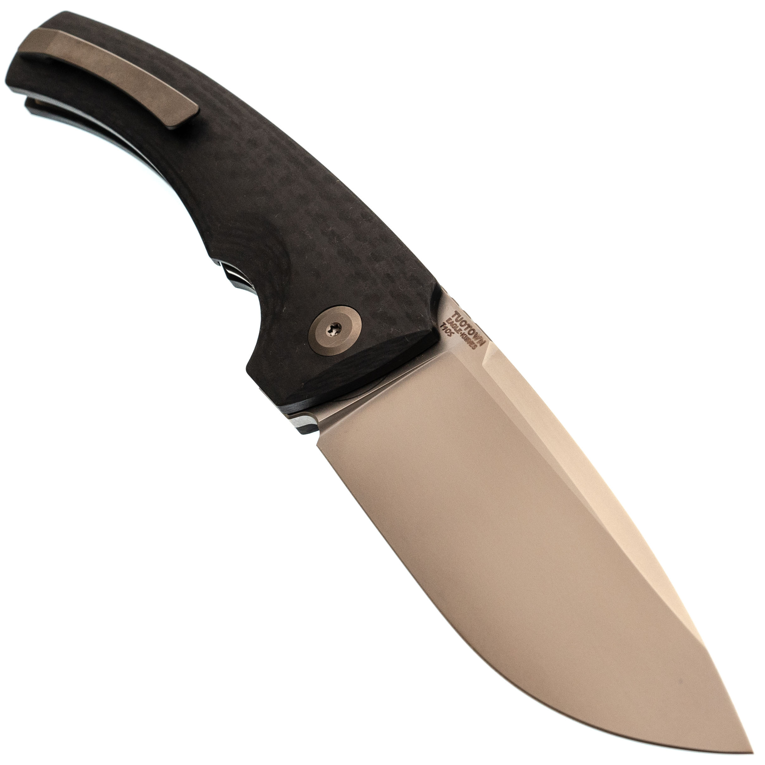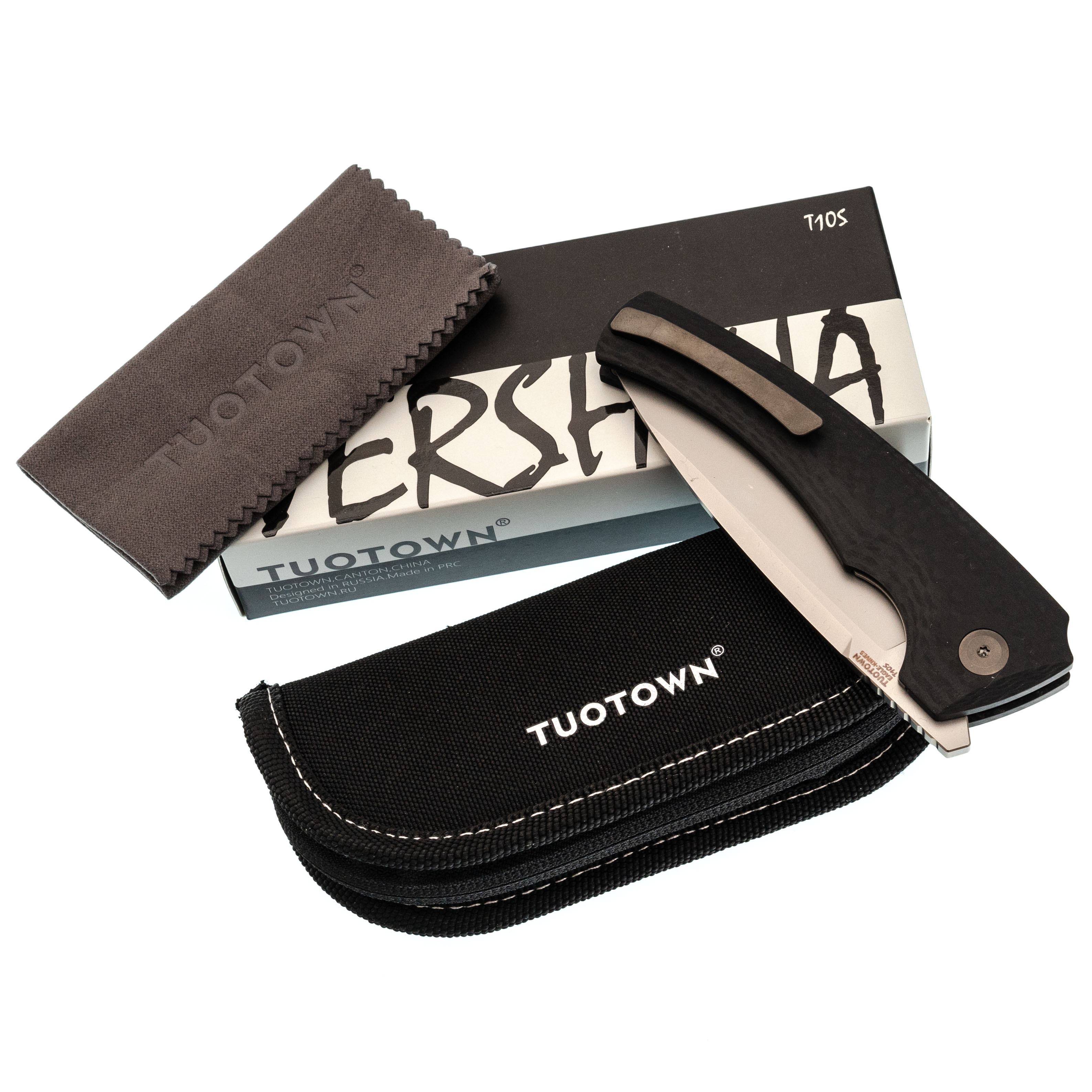 Kurakh от мастерской TuoTown - это средний по размеру складной нож, который органично вписывается в повседневный набор. Он не тянет на "здоровяка" в кармане, но по ощущениям в работе вполне взрослый инструмент: коробки, пищевые продукты, мелкая доработка дерева, верёвка - всё из привычного списка ему по силам. Широкий Drop-Point, аккуратное открывание через Front Flipper и надёжный замок делают Kurakh удобным выбором на каждый день.