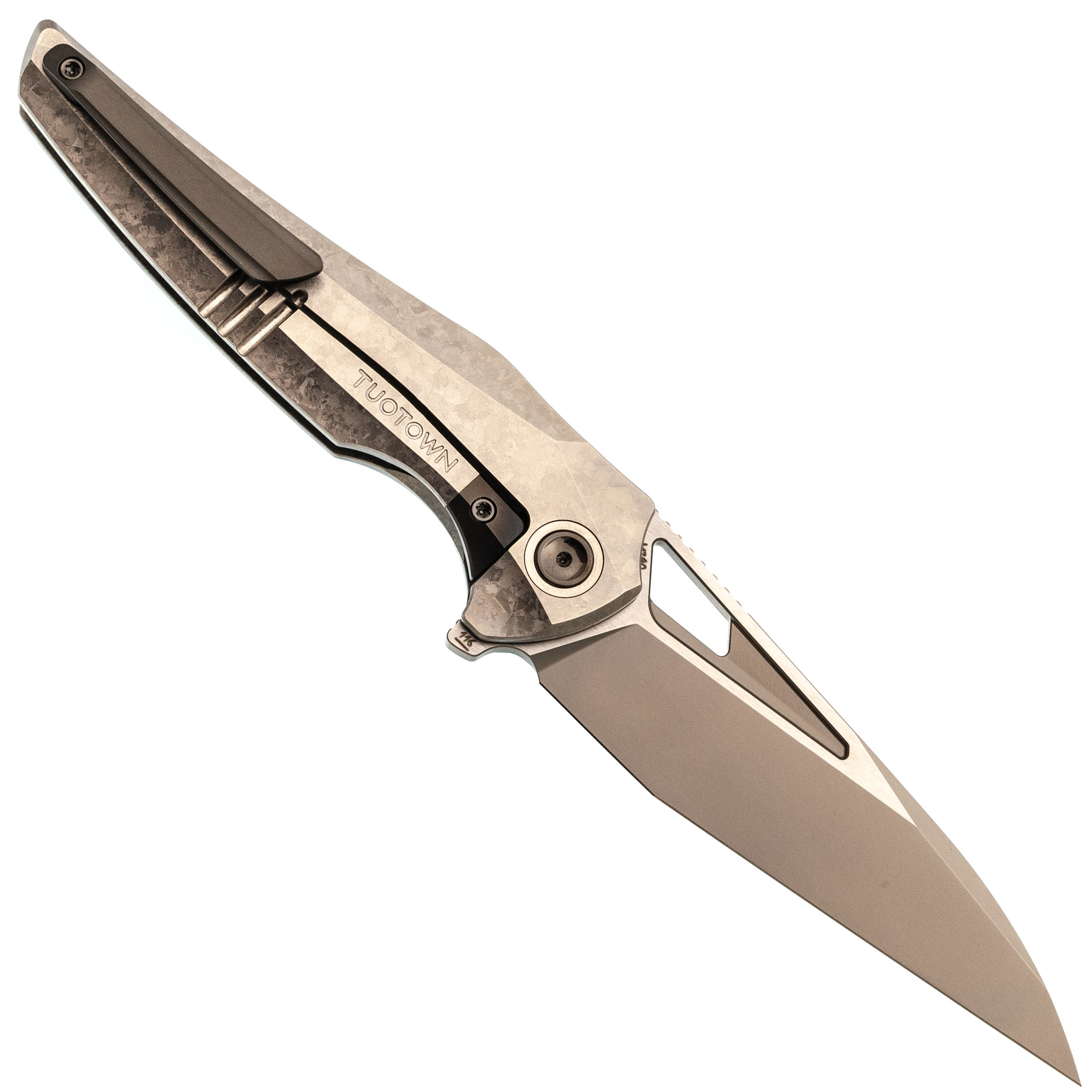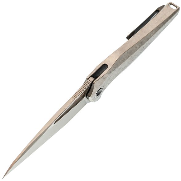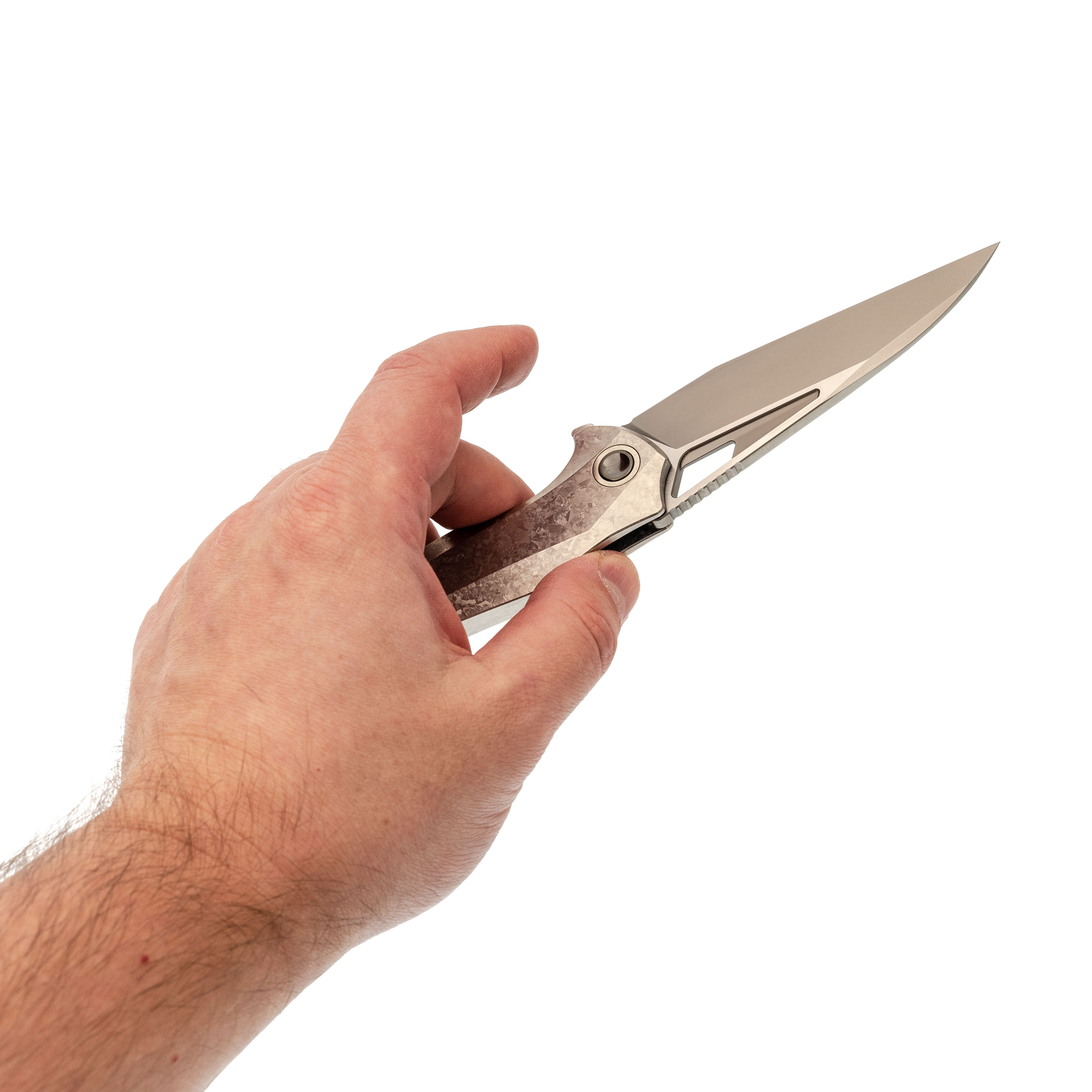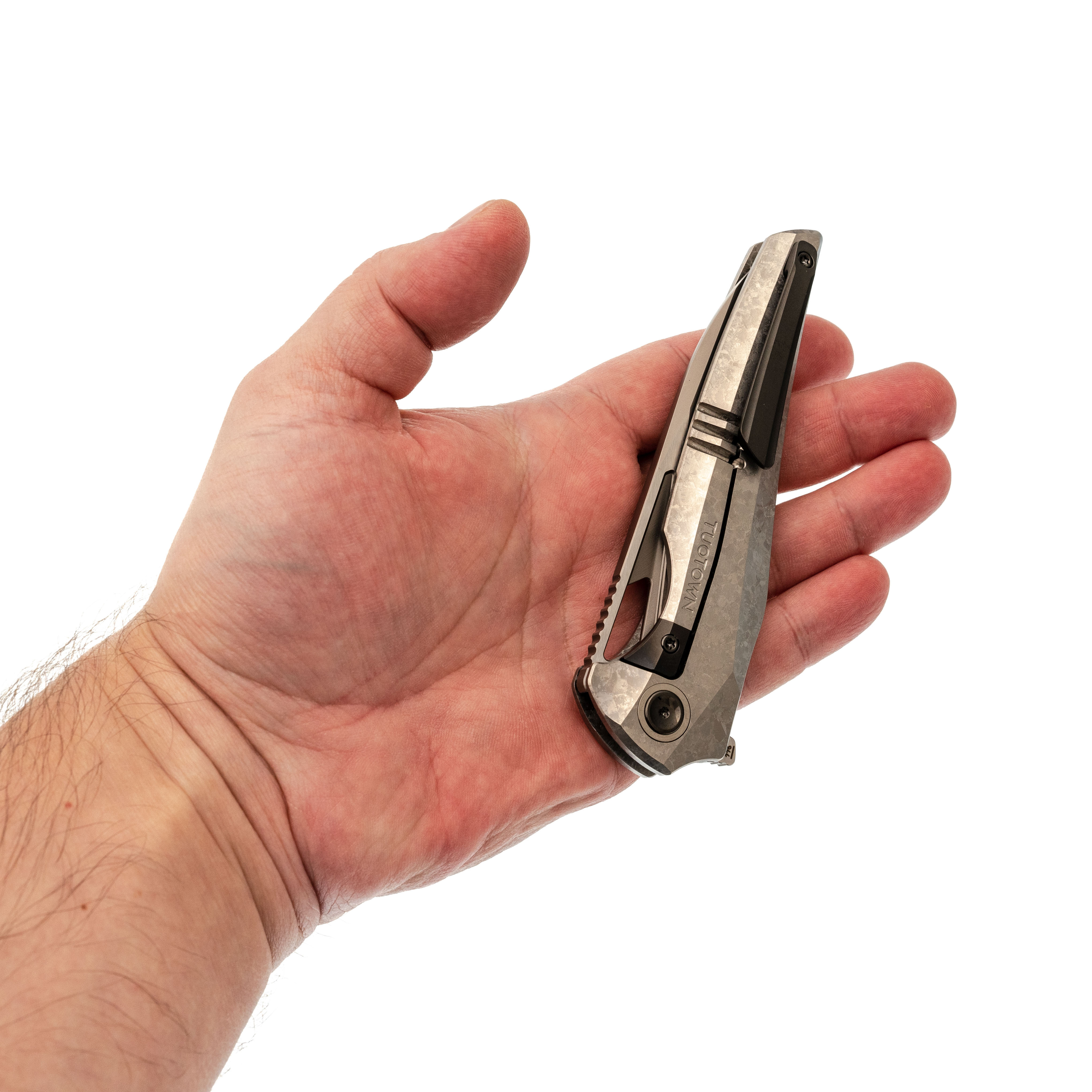 В серебристом варианте Magpie выглядит особенно технически: будто кусок высокотехнологичного оборудования, уменьшенный до формата кармана. Крупный габарит, строгий клинок Wharncliffe и светлая титановая рукоять с кристаллической текстурой создают образ современного инструмента для города и выездов. Нож рассчитан на регулярное ношение и активную работу.