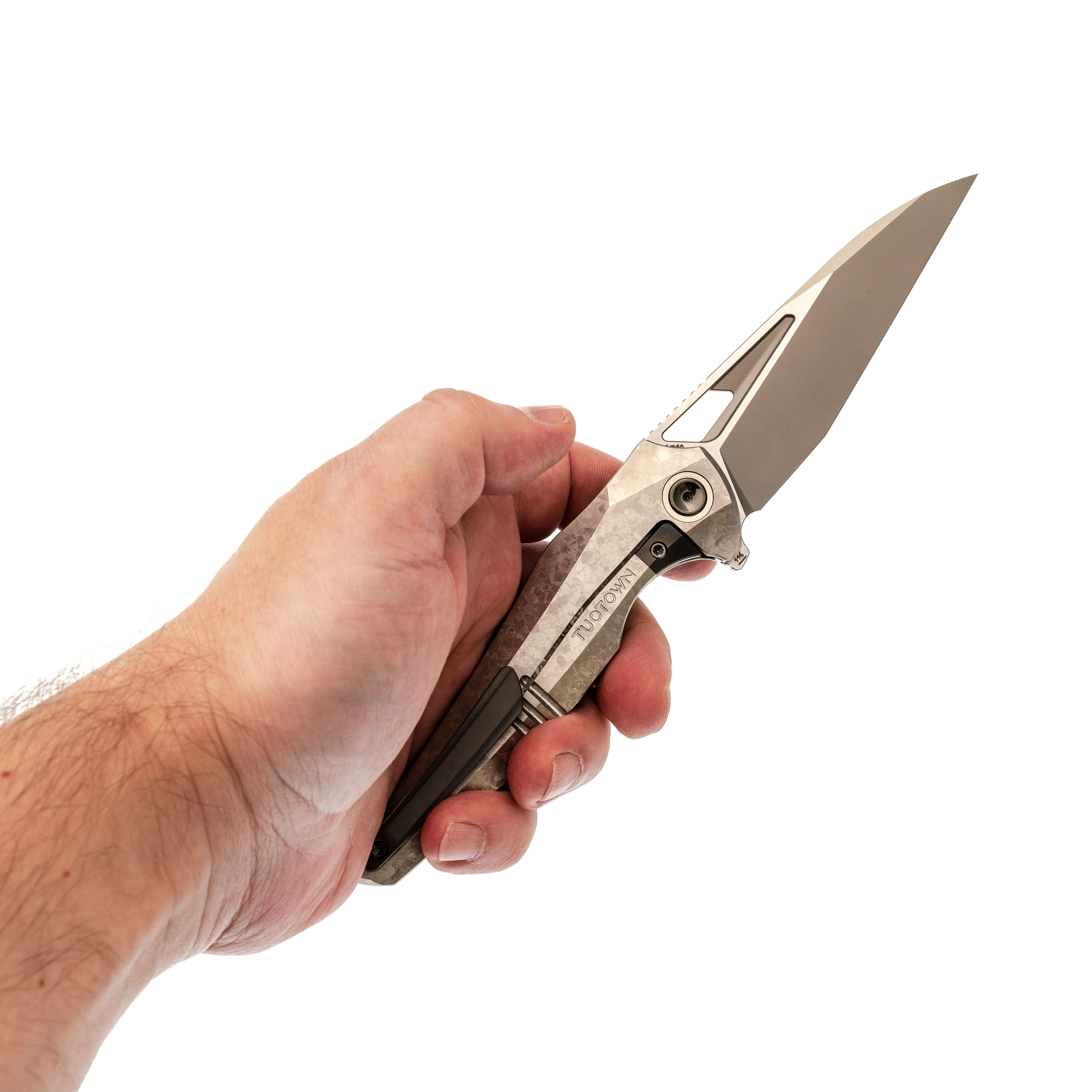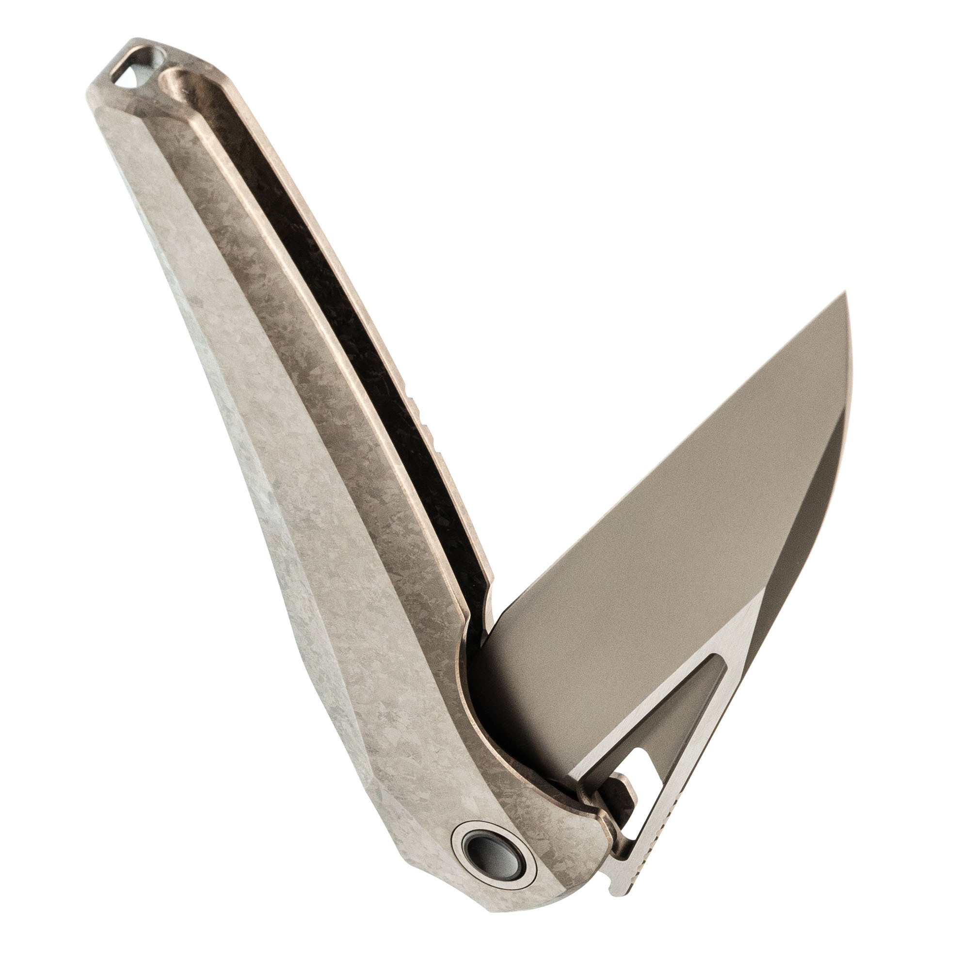 Интегральная титановая рукоять - цельнофрезерованная деталь, где спинка и «плашки» по сути составляют единую деталь. Повышает общую жёсткость, сокращает число соединений и придаёт ножу ощущение монолита.