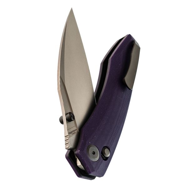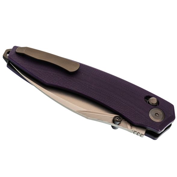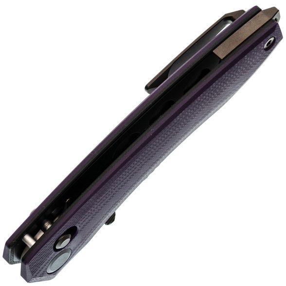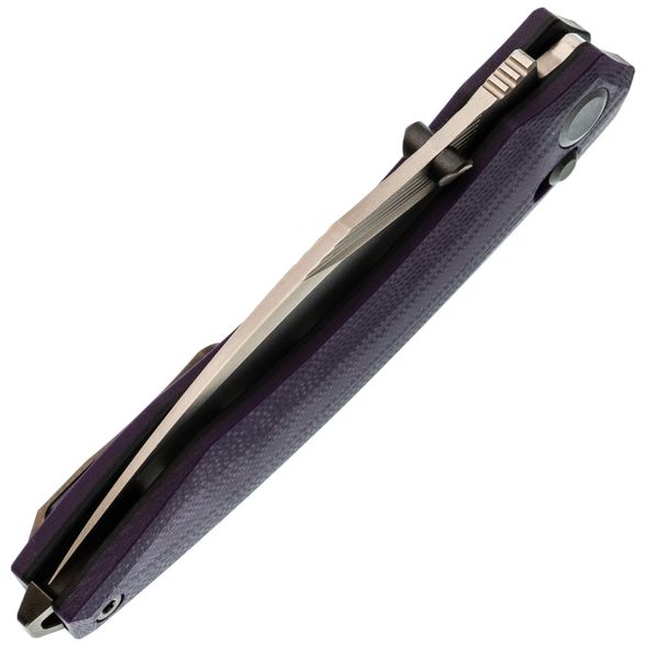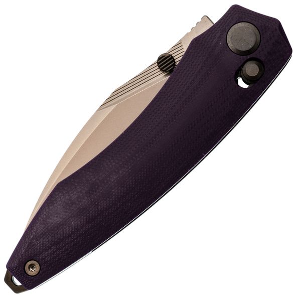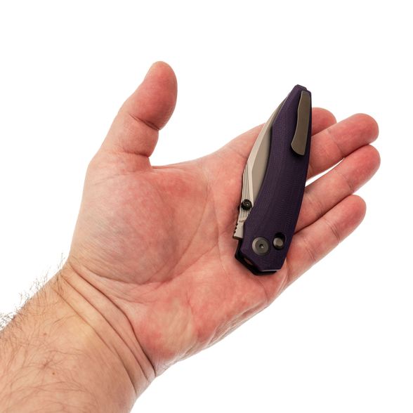 Рукоять нейтральной формы подойдёт для разных ладоней и не диктует жёсткую постановку пальцев. Фиолетовый G10 добавляет характер, но не выглядит вызывающе. Замок Crossbar-Lock удобен тем, что: