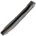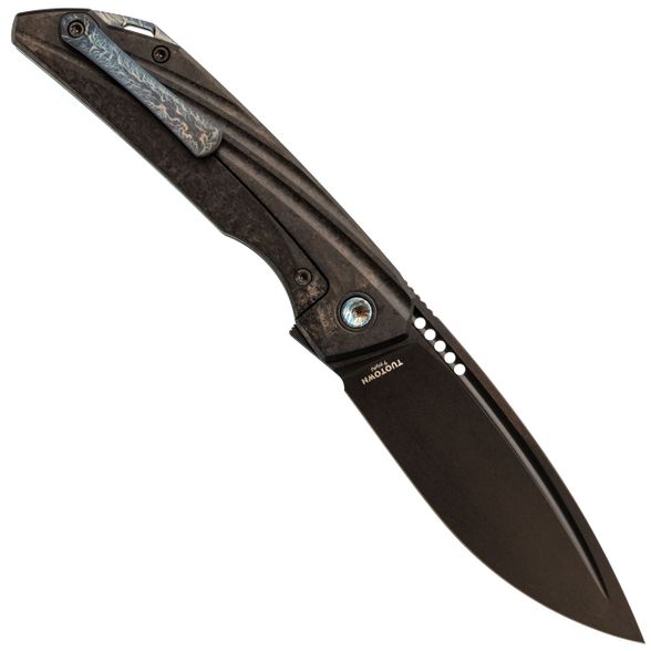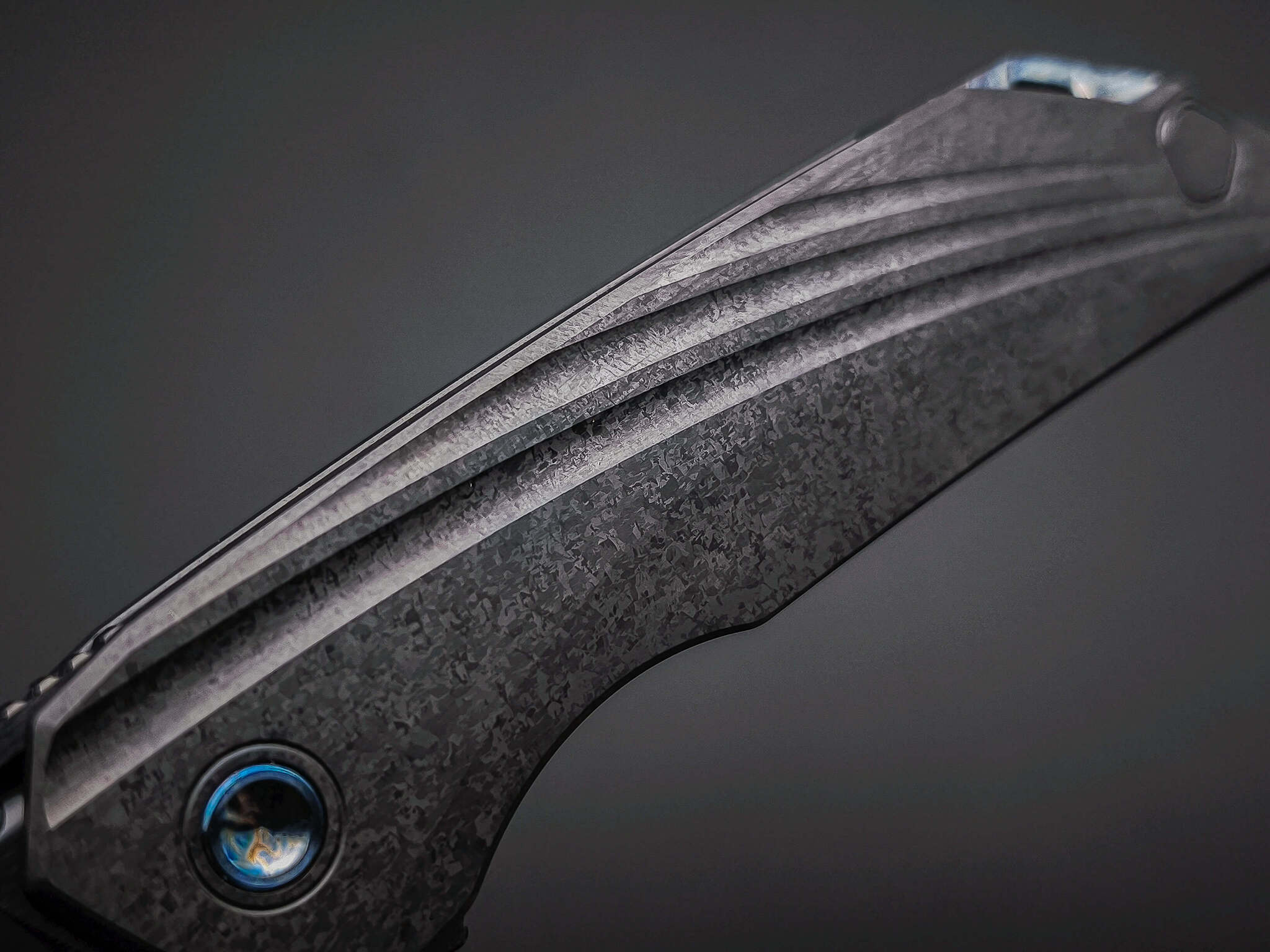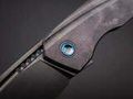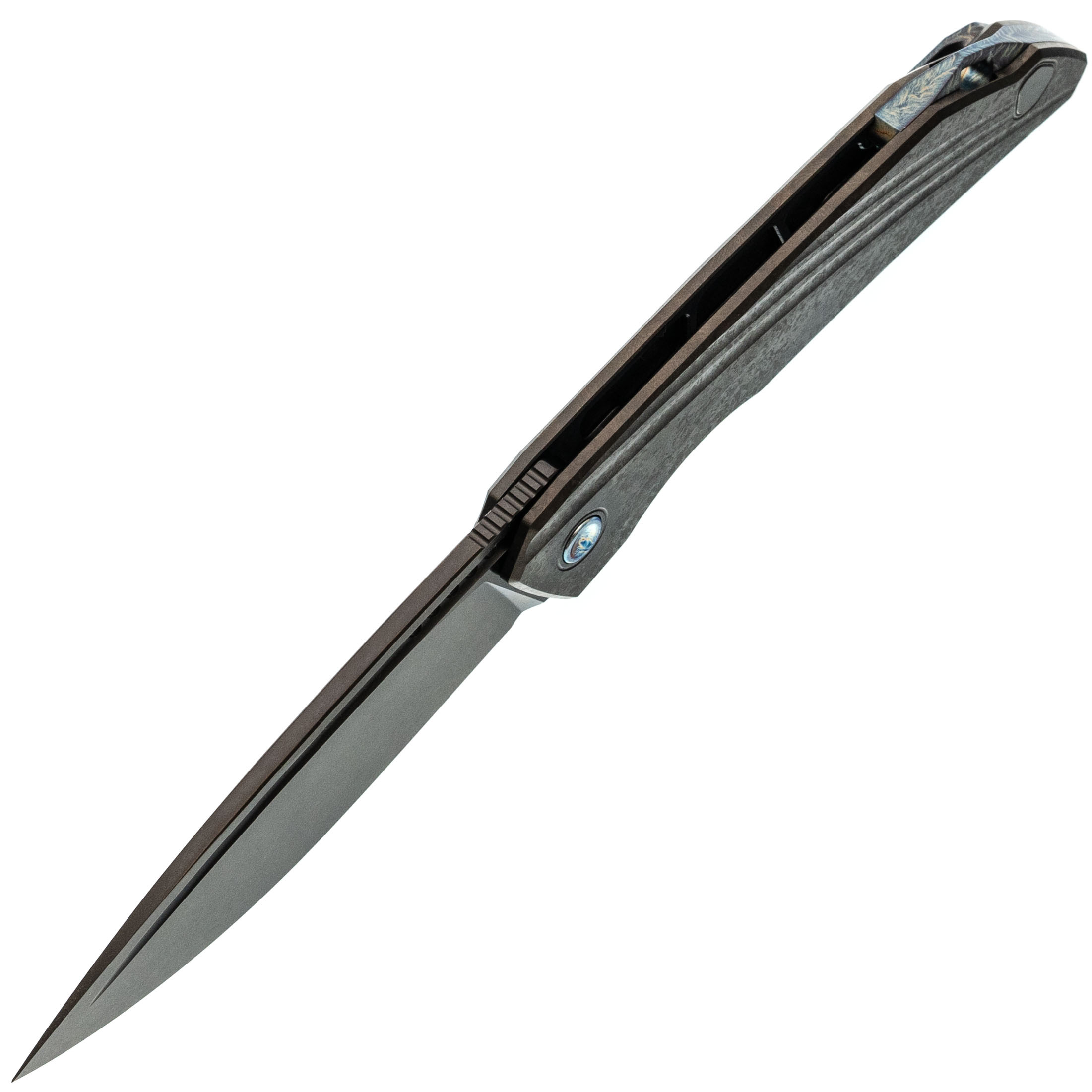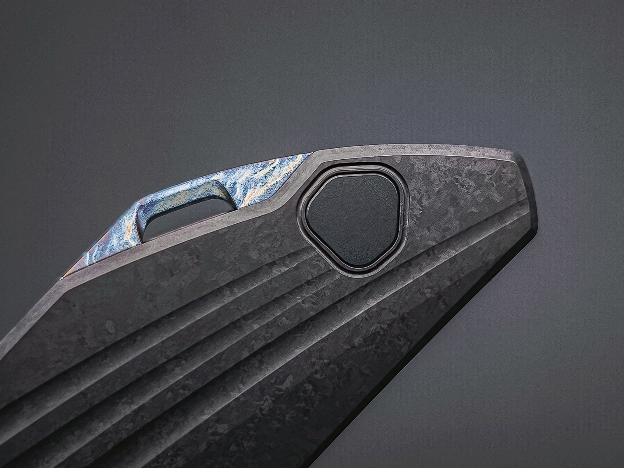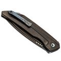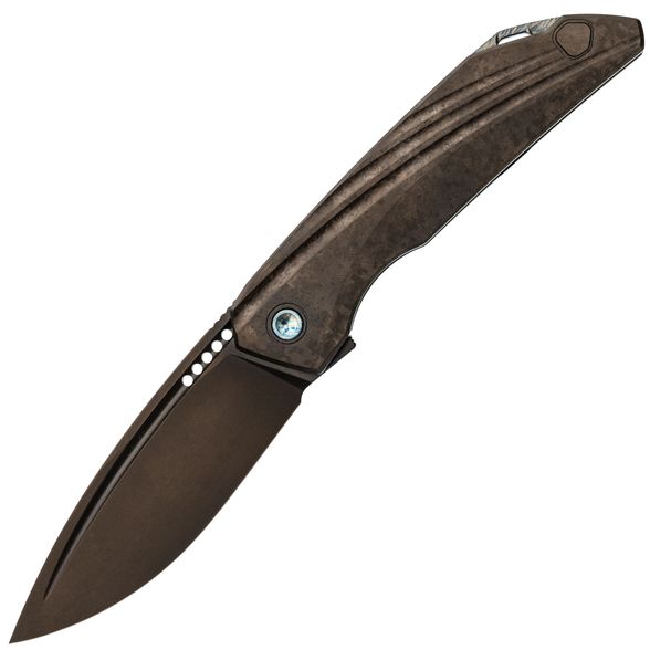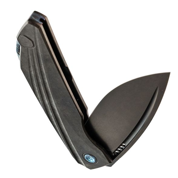 Рукоять выполнена из цельного куска титана - точная фрезеровка создаёт современный, футуристичный силуэт и приятную эргономику. Замок Frame-Lock надёжно фиксирует клинок, выдерживая серьёзные нагрузки. Цельнофрезерованная клипса уверенно держит изделие на кармане, а в бекспейсере предусмотрено отверстие для темляка.