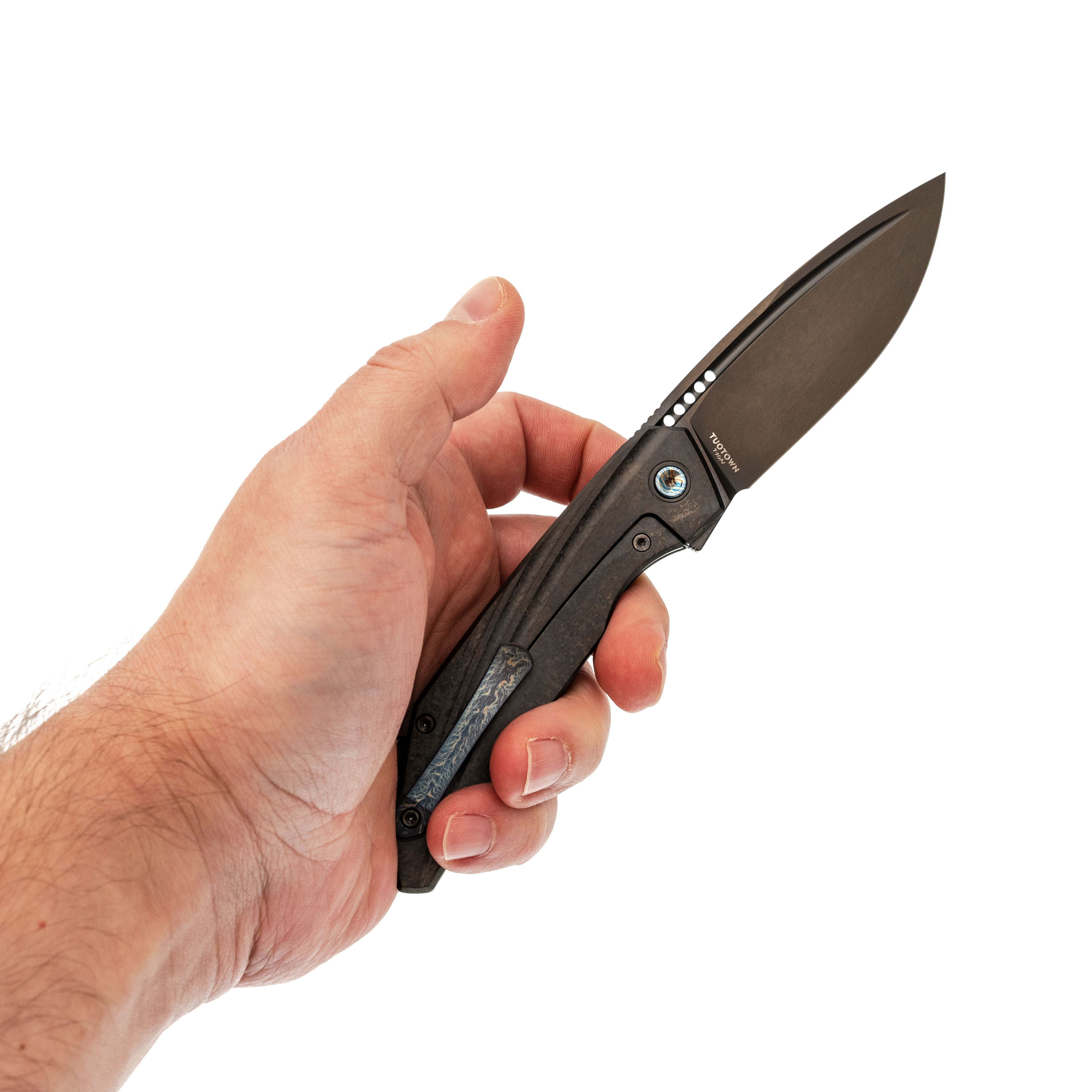 Титан рукояти. Прочный, лёгкий и устойчивый к времени. Его финиш придаёт поверхности кристаллический вид - как будто металл вырос из камня.