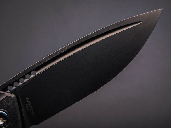 Клинок с профилем Drop-Point универсален и точен. Высокие прямые спуски и тонкое сведение делают его отличным помощником в любой задаче - он легко режет, аккуратно строгает и не требует усилий. Поверхность защищена DLC-покрытием, которое не только придаёт насыщенный тёмный оттенок, но и защищает от царапин и коррозии.