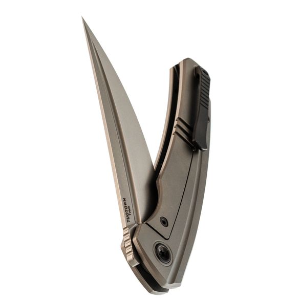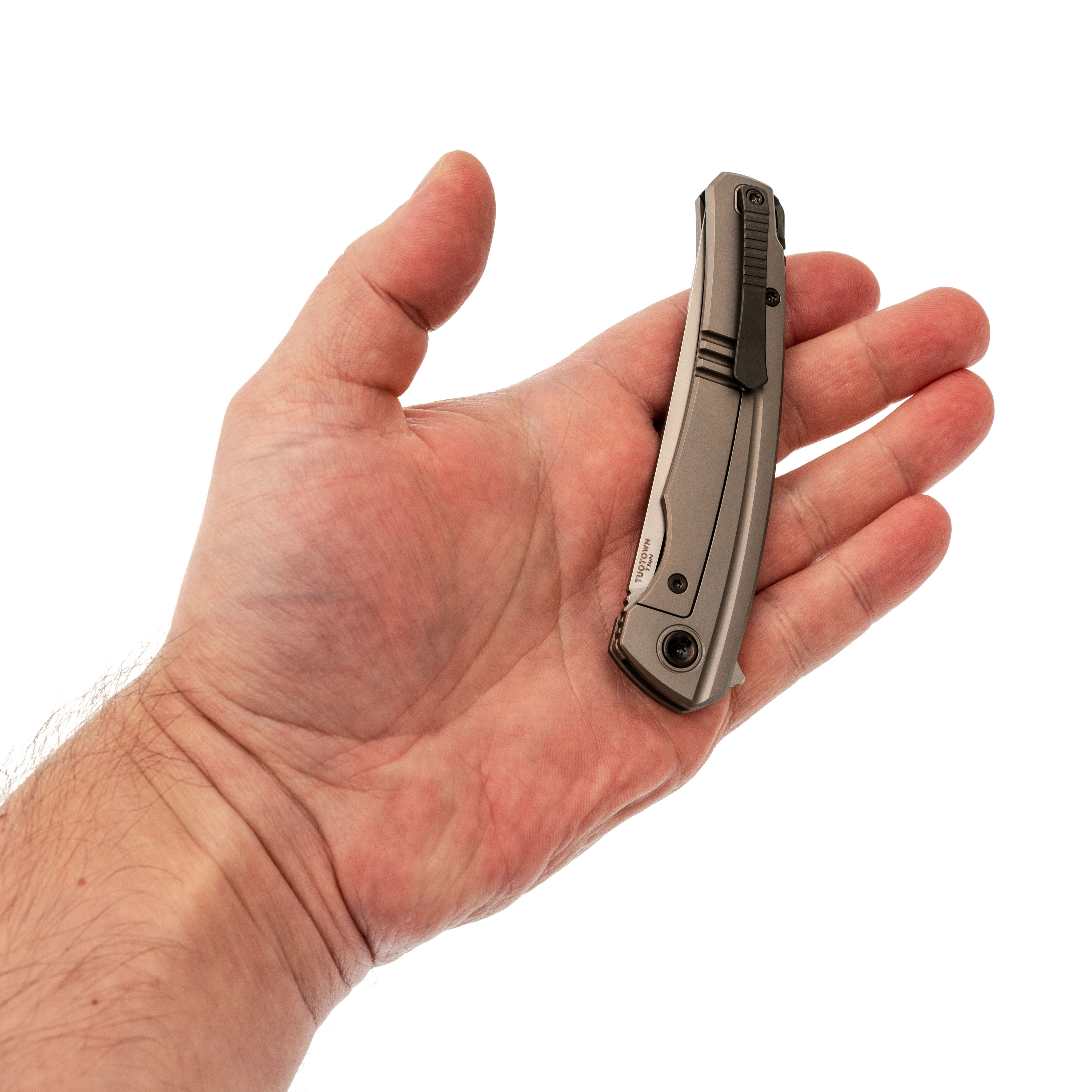 Титан - лёгкий, но прочный металл, устойчивый к деформации и времени. Использован для рукояти и клипсы, придаёт конструкции премиальный вид и сбалансированный вес.