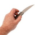 Профиль Upswept делает клинок универсальным и эффективным. Высокие прямые спуски и тонкое сведение позволяют выполнять рез точно и легко, а аккуратный флиппер открывает лезвие плавно, не нарушая общей линии дизайна. Замок Frame-Lock фиксирует клинок надёжно, так что можно спокойно сосредоточиться на работе.