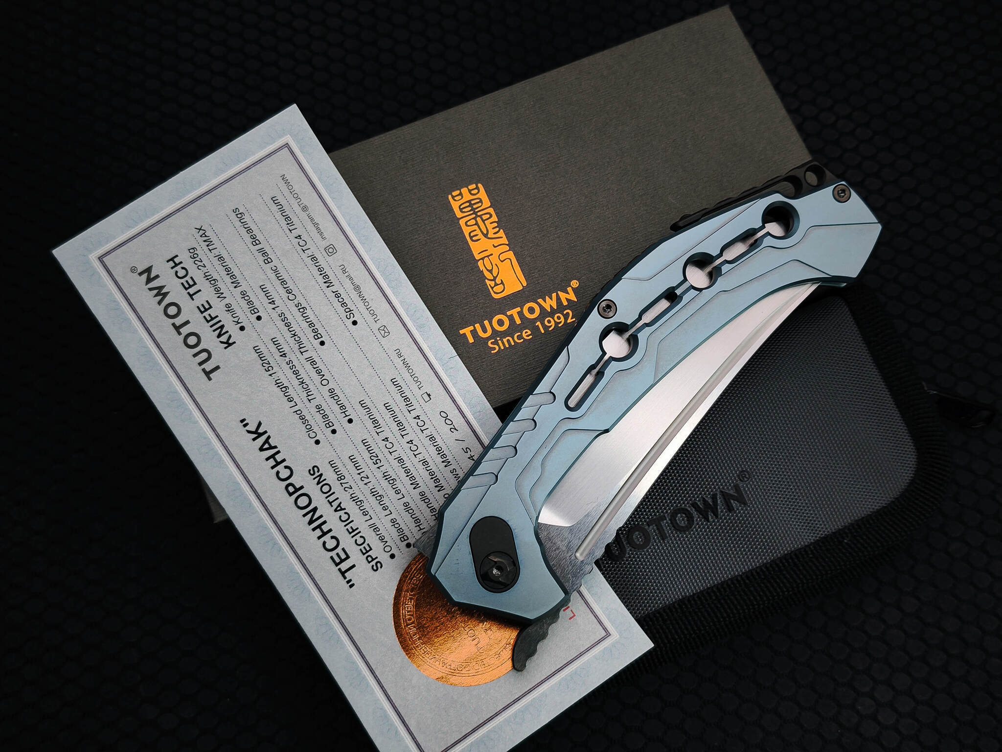 Складной нож TUOTOWN Technopchak, сталь Tmax, рукоять Titanium синий