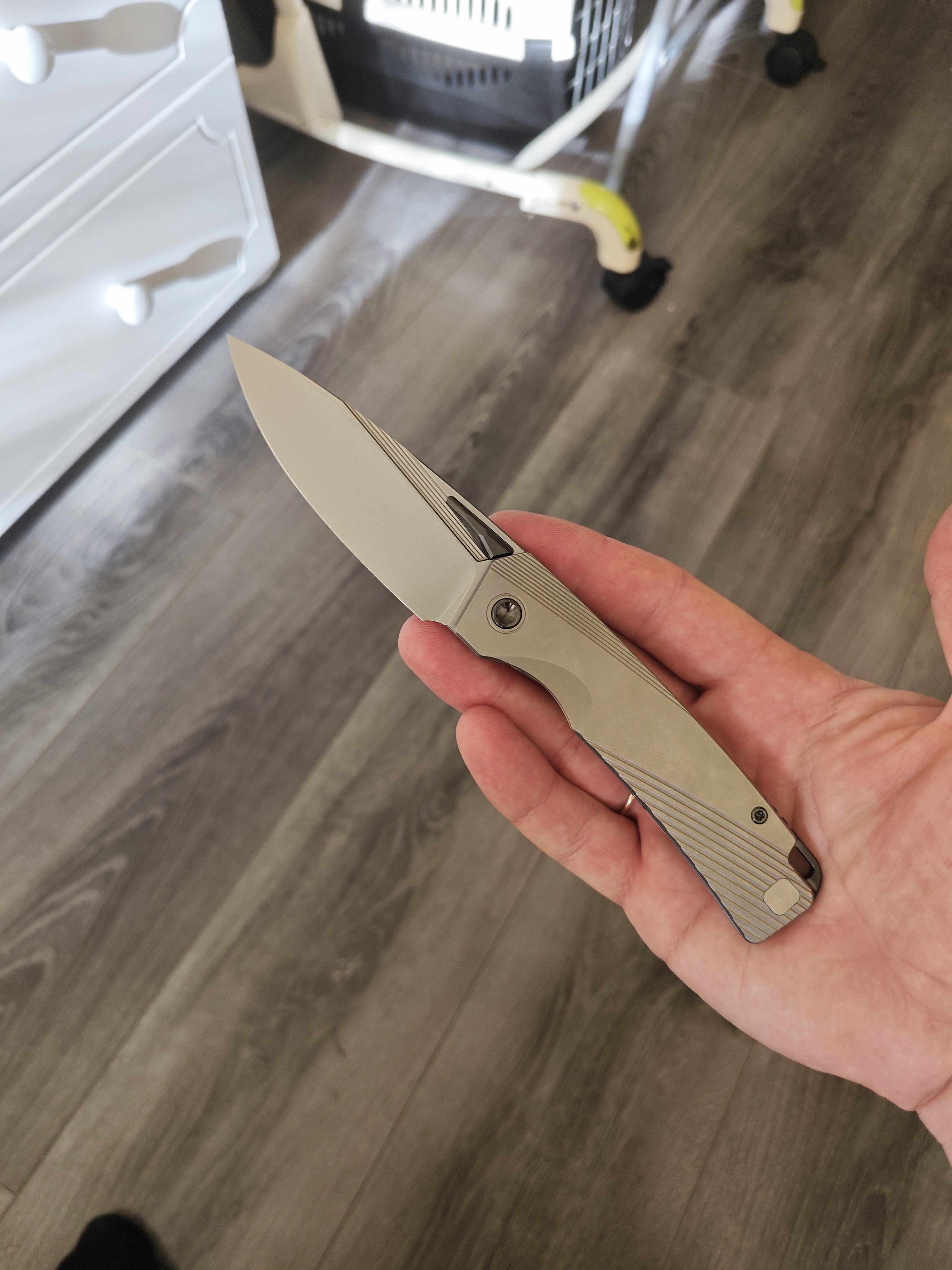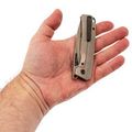 - Титан. Рукоять из титана делает нож лёгким и устойчивым к износу. Материал не боится влаги и со временем сохраняет аккуратный внешний вид.