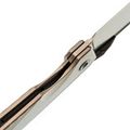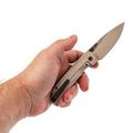 Форма рукояти спокойная и универсальная - нож удобно лежит в руке даже при длительной работе. Замок Frame-Lock прост и надёжен, без лишних деталей. Крупное темлячное отверстие добавляет вариативности в ношении и использовании, особенно если нож часто достаётся из кармана.
