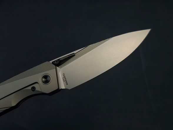 - T14N (Sandvik 14C28N). Проверенная нержавеющая сталь из Швеции с фирменной закалкой TuoTown. Твёрдость 61–63 HRC даёт хороший запас по удержанию режущей кромки, а криообработка сохраняет стойкость к сколам. Подходит для регулярного использования без капризов.