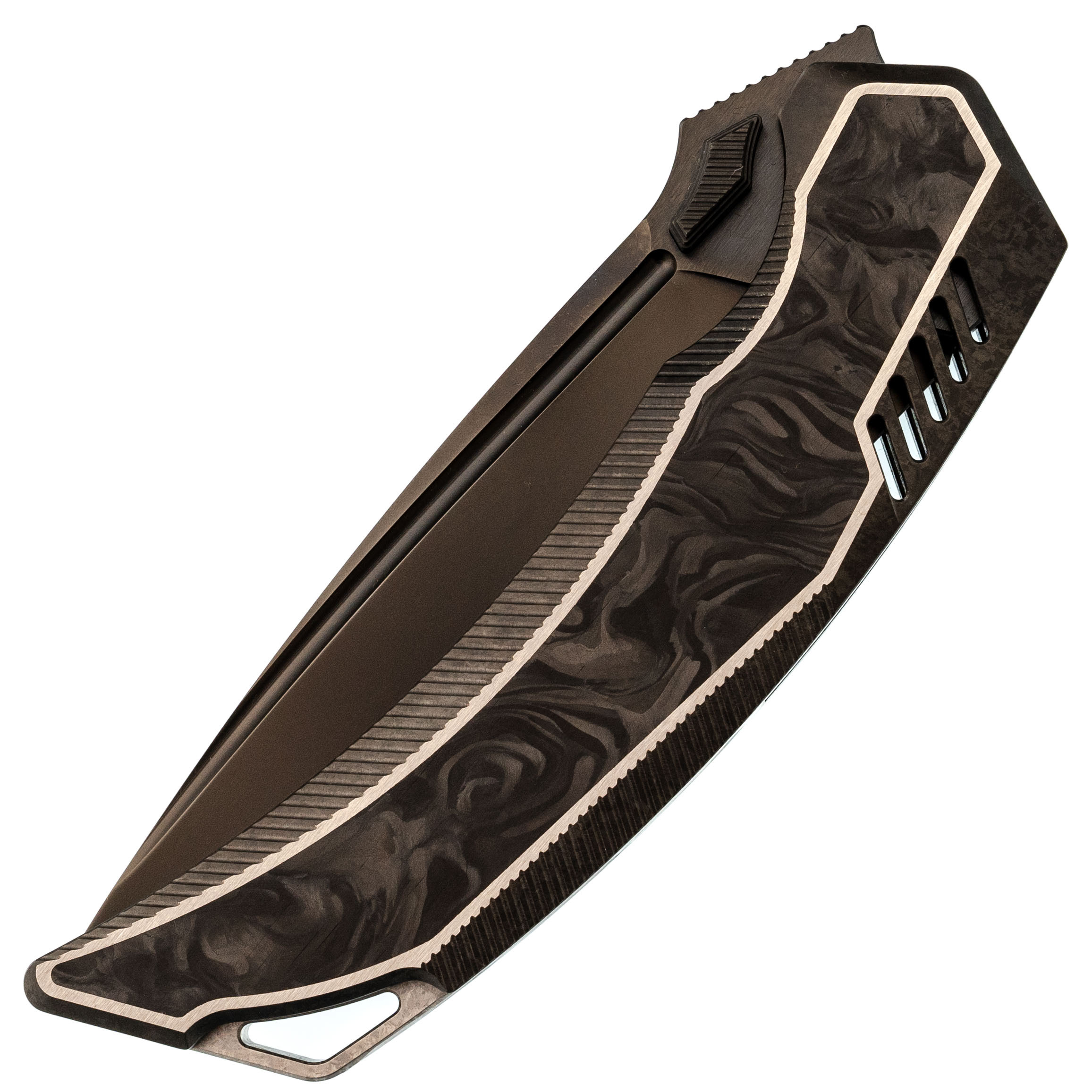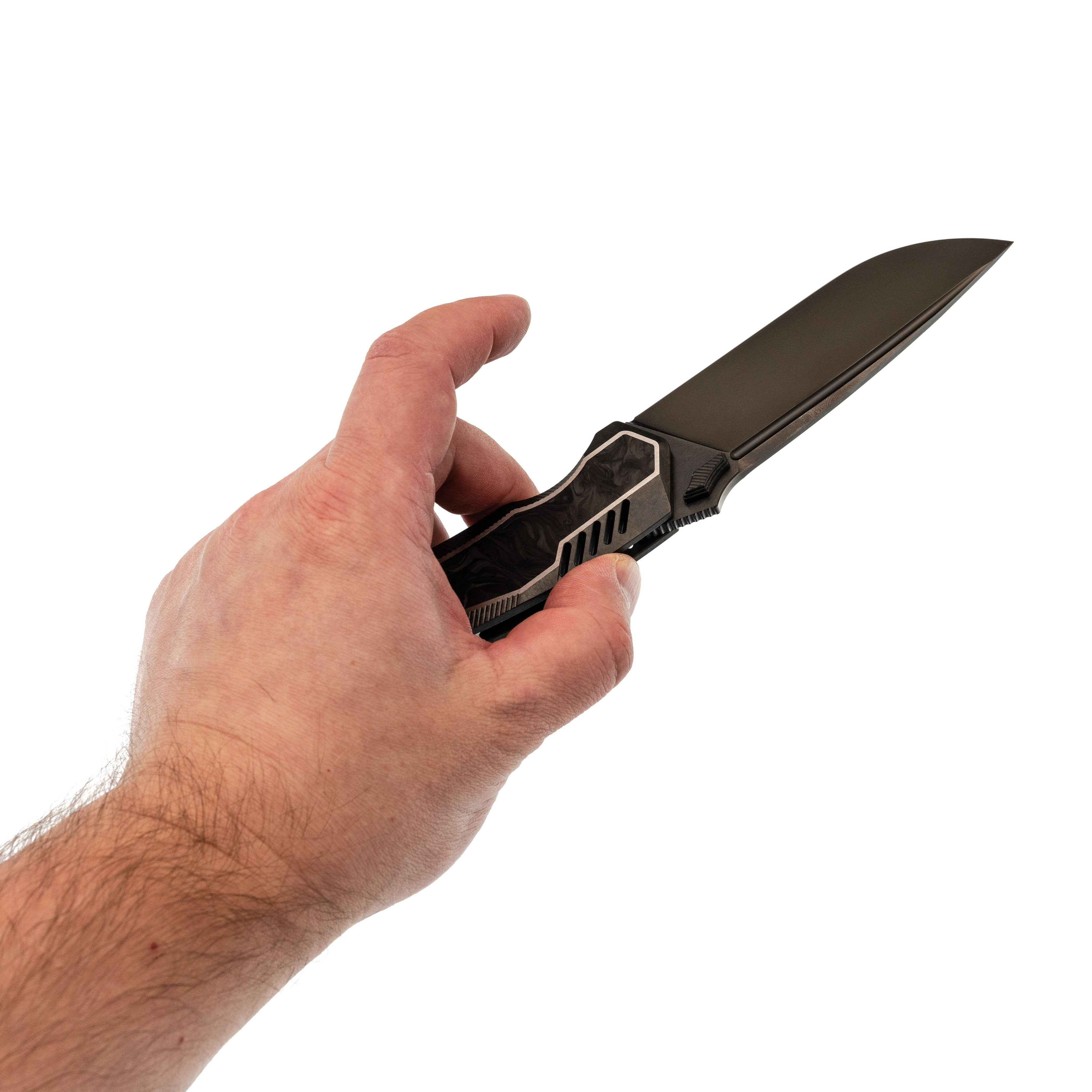 Карбоновая вставка - лёгкий, но жёсткий материал, который добавляет рукояти выразительный акцент и подчёркивает её статус.
