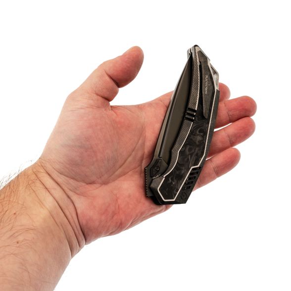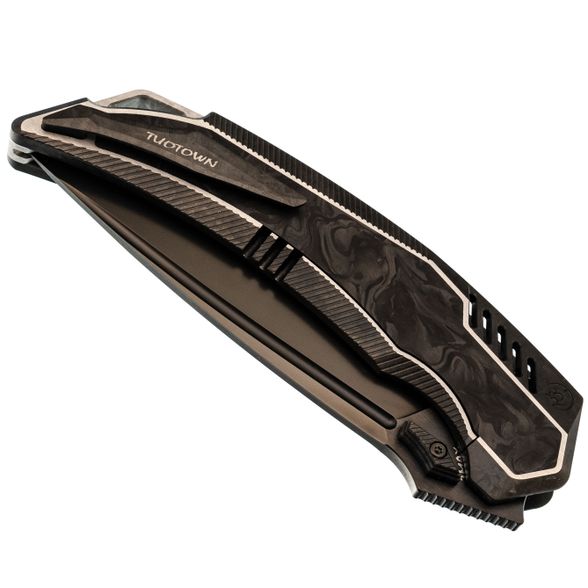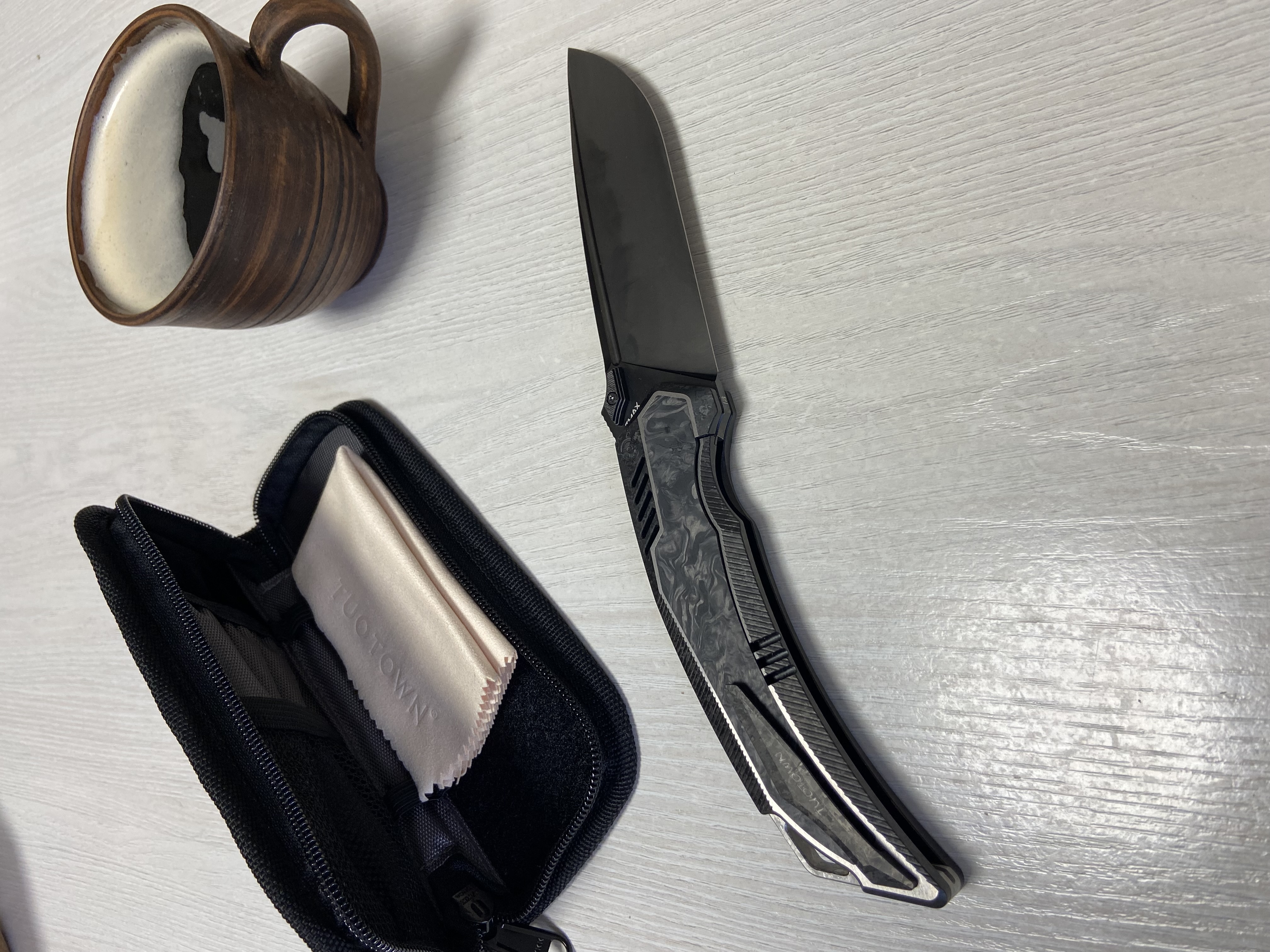 Tiburon от TuoTown - это крупный универсальный складень для тех, кому важны практичность и современные решения в одном предмете. Внешне он выглядит как гость из будущего, а ведёт себя как спокойный рабочий инструмент: уверенно режет, удобно носится и не капризничает в повседневных задачах.