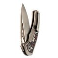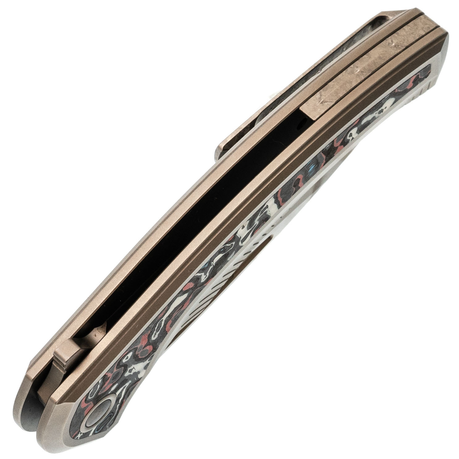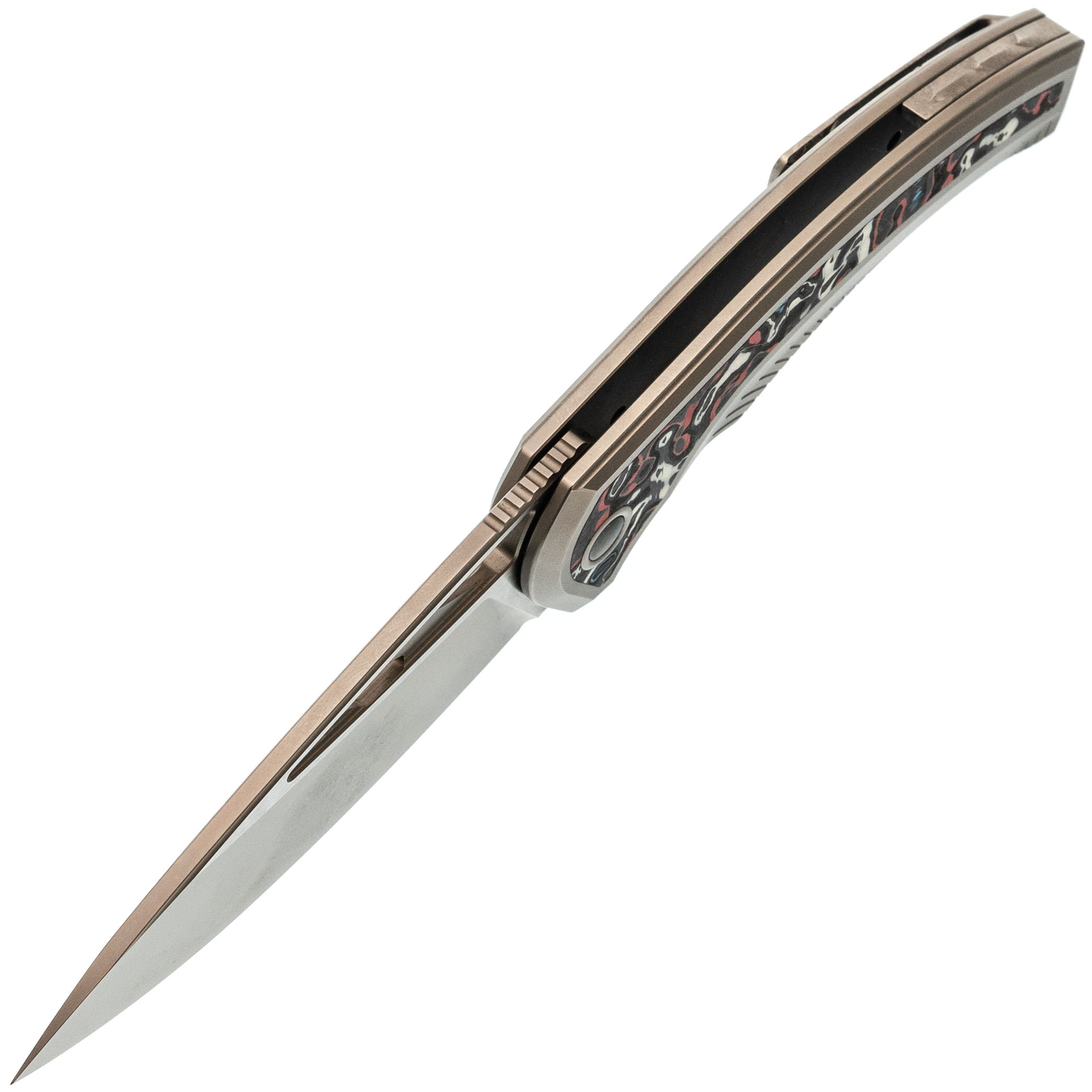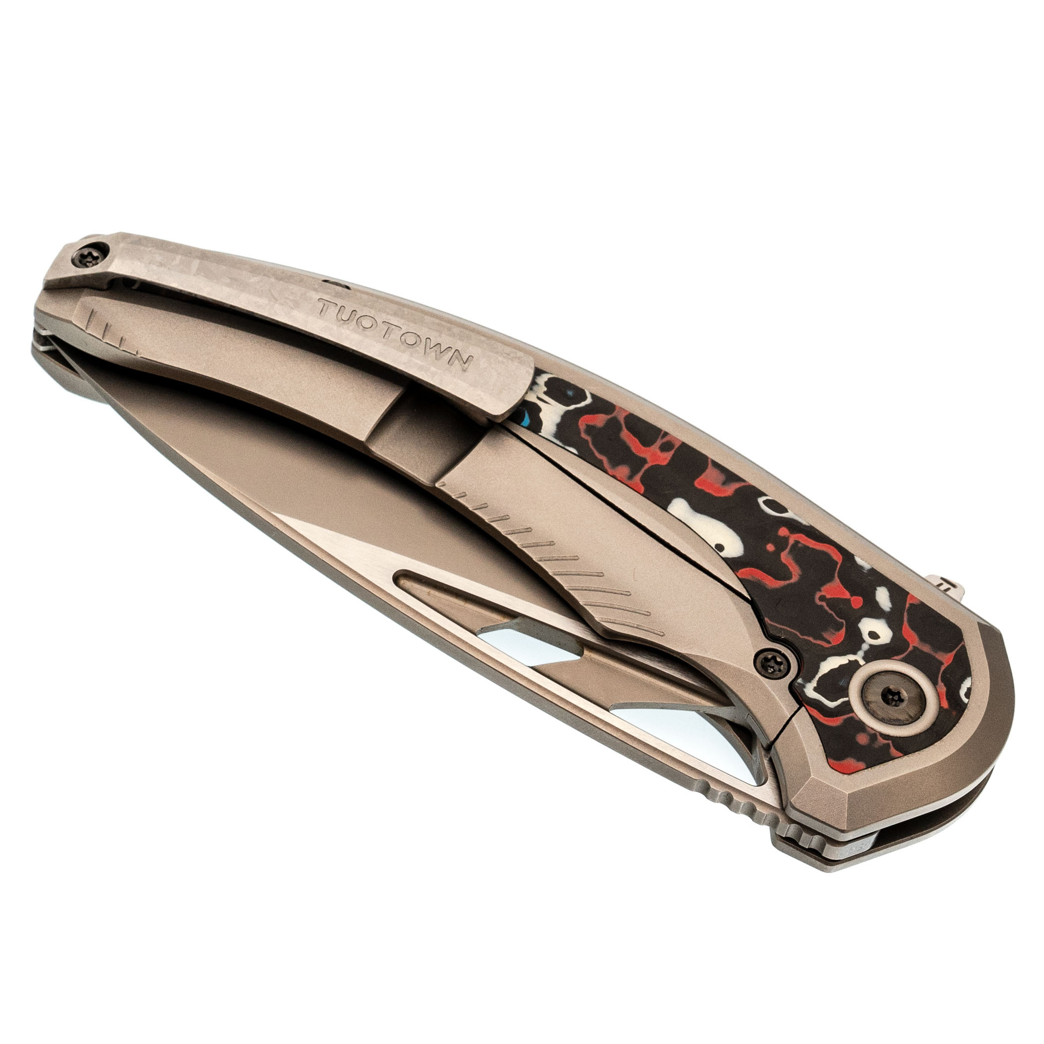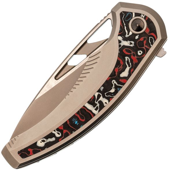 Титан - лёгкий, прочный и устойчивый к коррозии металл. Используется в авиации и часах, а здесь - в каркасе и клипсе, чтобы нож оставался лёгким, но жёстким.
