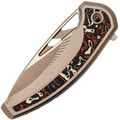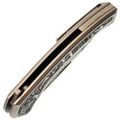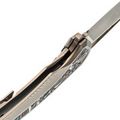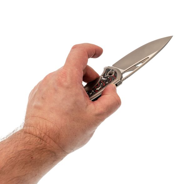 Широкий клинок с профилем Drop-Point создан для реальной работы: от точных движений кончиком до уверенного реза и строгания. Прямые высокие спуски обеспечивают отличное проникновение в материал и лёгкий контроль. Открытие возможно флиппером или через отверстие в клинке - выбор за вами. Замок Frame-Lock удерживает клинок с уверенностью, достойной профессионального уровня.