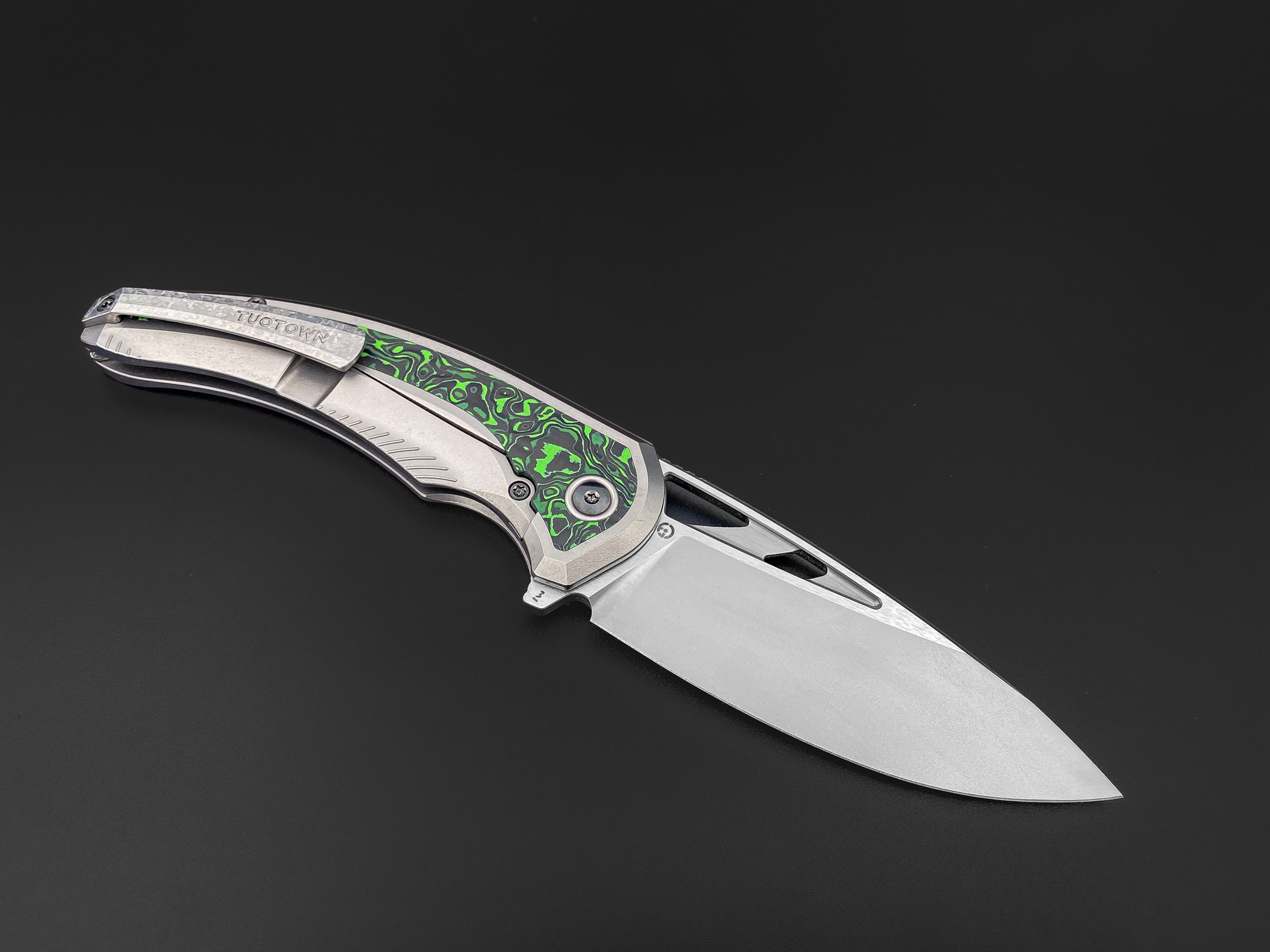 Складной нож TUOTOWN Whale, сталь M390, рукоять титан, Jungle Wear карбон