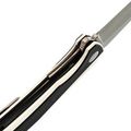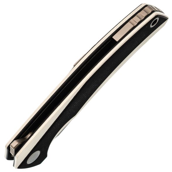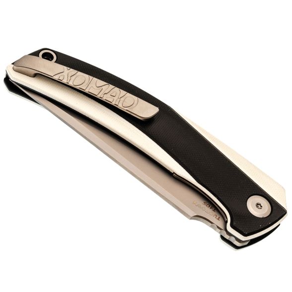 Рукоять Xamao из G10 сделана с прицелом на комфорт при разном хвате. Эргономичный профиль мягко повторяет форму ладони, а выраженный подпальцевой упор помогает зафиксировать руку и чувствовать себя уверенно, когда приходится работать плотным резом. Контрастные расцветки - чёрная и белая - добавляют ножу аккуратный, "городской" стиль. Цельнофрезерованная клипса позволяет носить Xamao на краю кармана: нож сидит глубоко и незаметно, но при этом быстро извлекается при необходимости. Темлячное отверстие даёт возможность добавить шнур - для удобства извлечения или лёгкой персонализации. В сумме всё это делает Xamao от TuoTown удобным и продуманным вариантом для повседневного ношения.