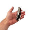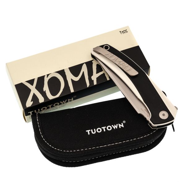 Xamao от TuoTown - складной нож средних размеров для тех, кто любит вещи с характером. Стремительные линии клинка, чёткая геометрия рукояти и сочетание чёрного с белым создают ощущение скорости и контроля. По габаритам это удобный "среднячок" на каждый день: его комфортно носить в городе, брать с собой в поездки и использовать для повседневных задач - от распаковки посылок до мелких работ по хозяйству. Модель собрана аккуратно, с хорошим качеством подгонки деталей, так что Xamao воспринимается как надёжный помощник, а не разовый аксессуар "на попробовать".