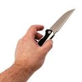 - Рукоять из G10 - современный композит на основе стеклоткани и смолы. Отличается высокой прочностью, стойкостью к ударам и износу, не впитывает влагу и не реагирует на перепады температуры. Даже в сырой ладони G10 остаётся цепким, не выскальзывает и даёт надёжный хват.