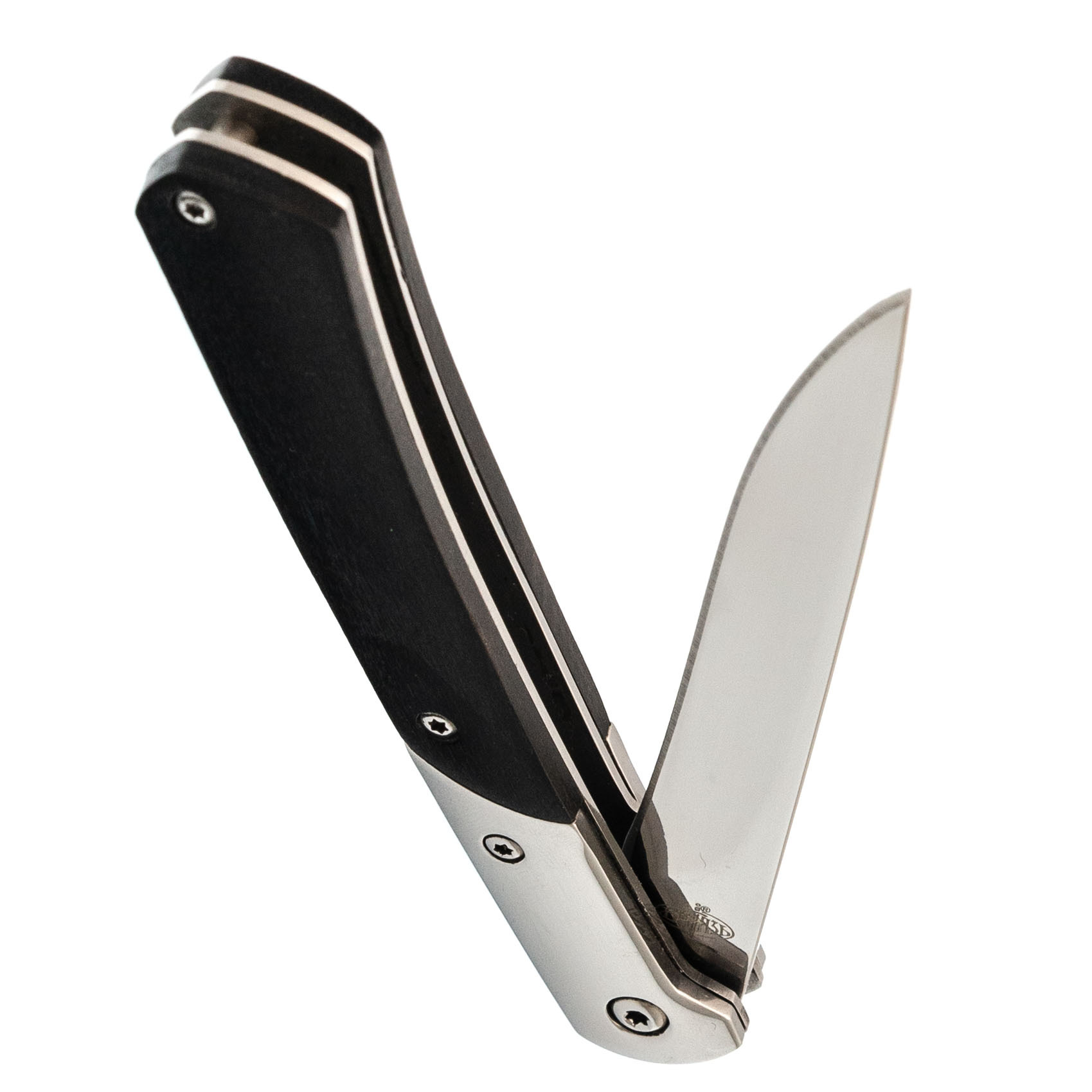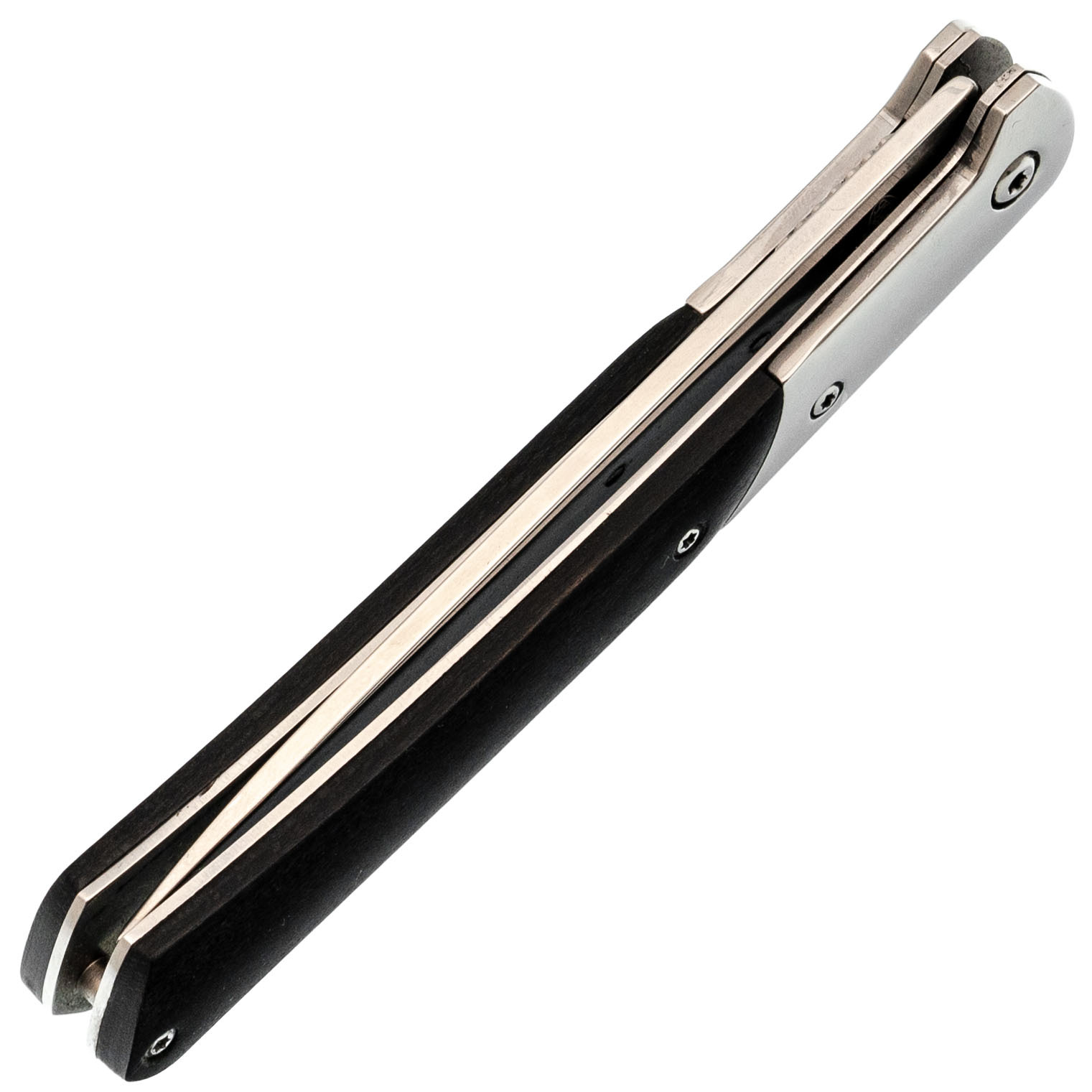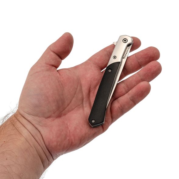 Узкий клинок с геометрией Drop-Point подчеркивает аккуратность модели. Высокие спуски и тонкий обух дают чистый и лёгкий рез, а классическая форма позволяет уверенно справляться с повседневными задачами. Открывается с помощью ногтевого зацепа, как у традиционных складней - это добавляет особого шарма.