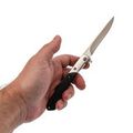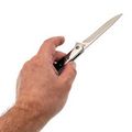 Изогнутая рукоять удобно ложится в ладонь и делает работу комфортной даже при длительном использовании. Отверстие для темляка даёт возможность дополнить модель шнурком, добавив немного индивидуальности.