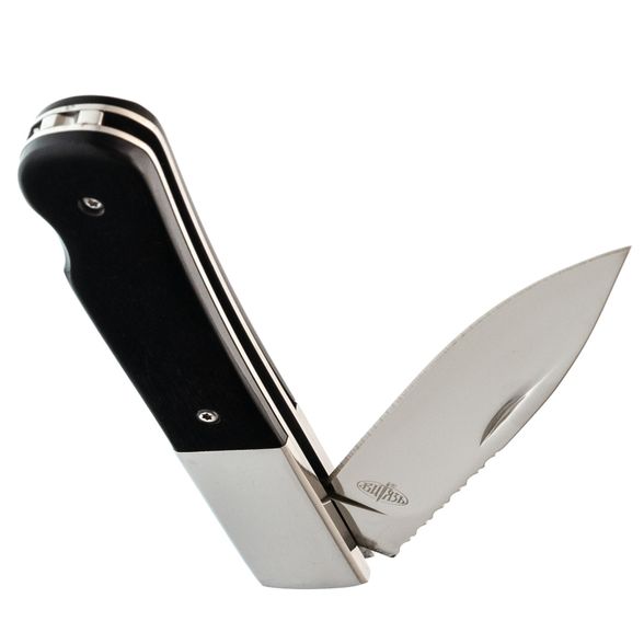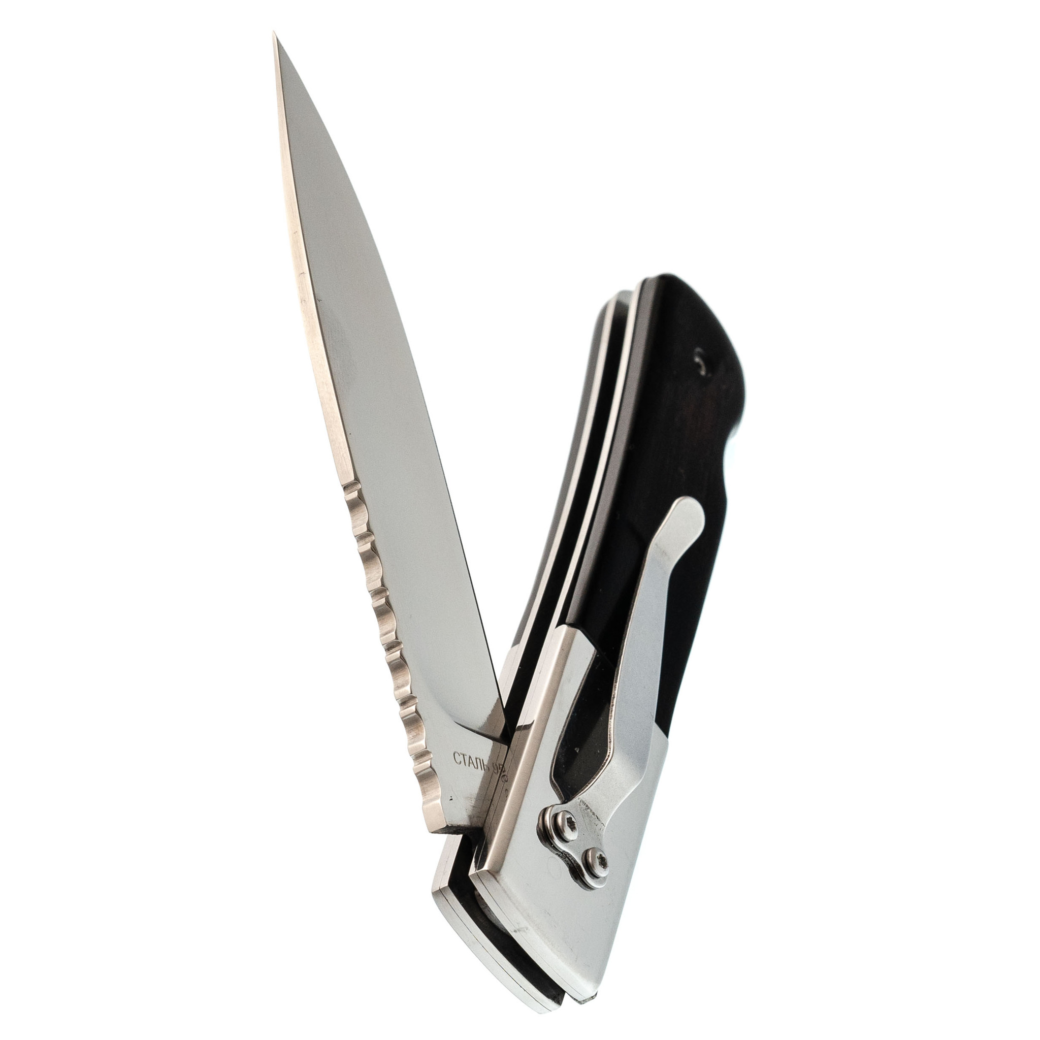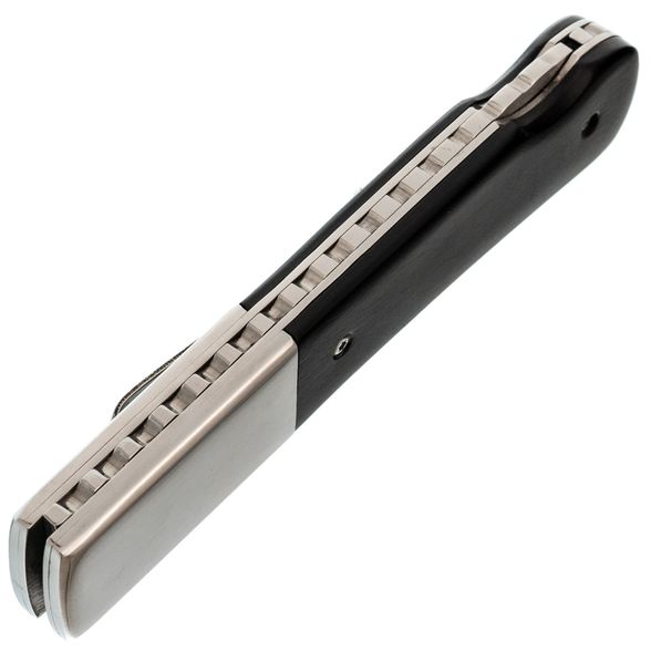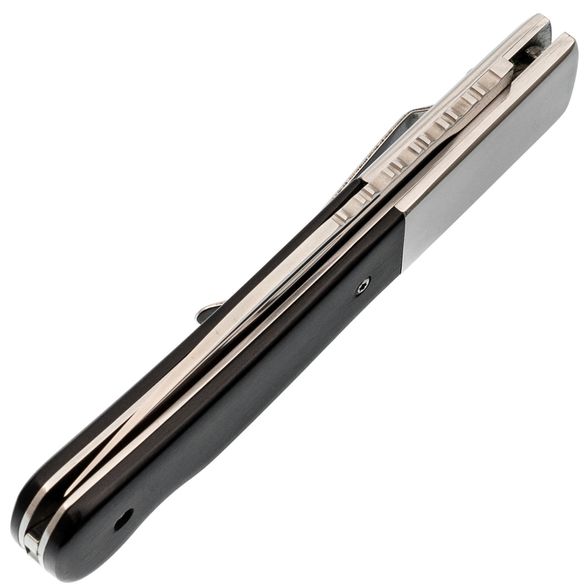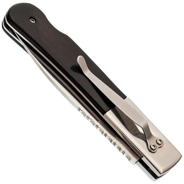 Изогнутая форма рукояти позволяет держать инструмент комфортно даже при долгом использовании. Для надёжного ношения предусмотрена карманная клипса и отверстие под темляк. Механизм фиксации Back-Lock обеспечивает уверенное удержание клинка в рабочем положении. Открывается модель с помощью ногтевого зацепа - как у классических складников, что добавляет особого шарма и подчёркивает традиционный характер.