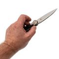 Рукоять имеет удобную форму, что позволяет держать нож с максимальным комфортом. Даже при длительном использовании в руке он не вызывает дискомфорта. А благодаря древесным накладкам вы получаете приятное ощущение при каждом захвате. Также есть клипса для удобного ношения в кармане, что делает его идеальным выбором для ежедневного ношения.