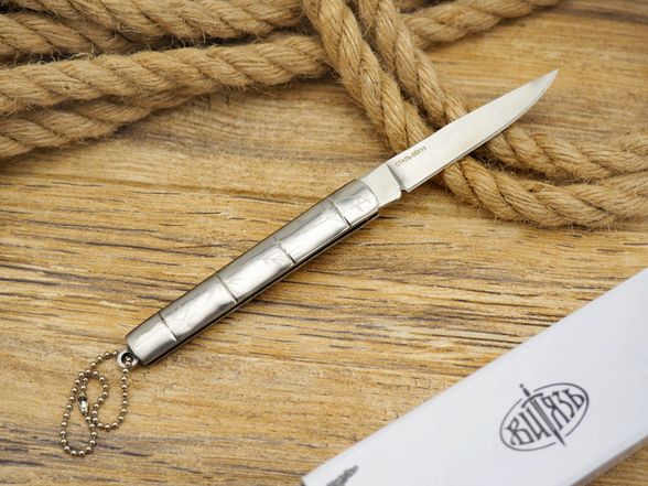 Клинок из стали 65 - выдерживает повседневные нагрузки, сохраняет остроту при аккуратном использовании и легко затачивается при необходимости.