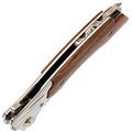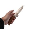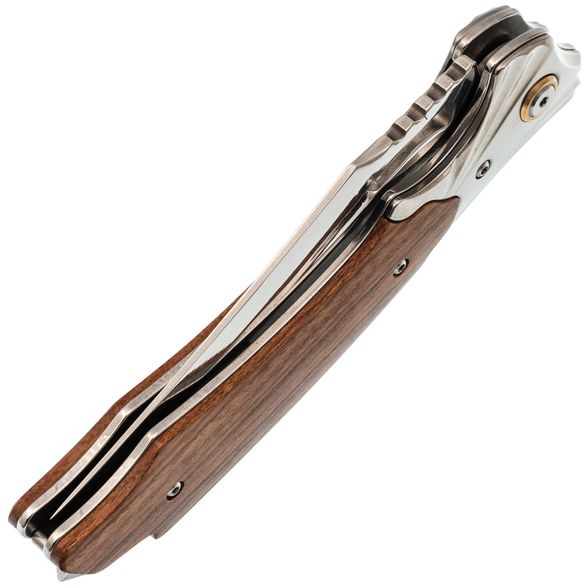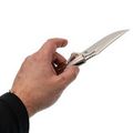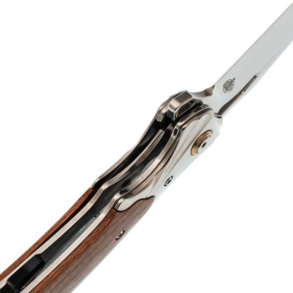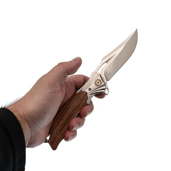 Рукоять этого ножа обладает эргономичной формой, что делает его удобным в руке даже при длительном использовании. Разделение на больстер и накладку отсылает к винтажным джентльменским моделям, добавляя ножу изысканности и функциональности. Этот элемент дизайна не только красив, но и повышает удобство использования.