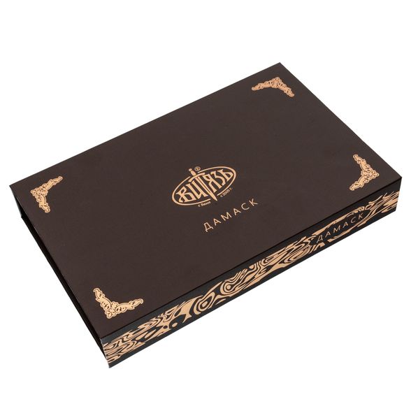 - Клинок из дамасской стали - уникальная структура, обеспечивающая отличную прочность и долговечность. Такая сталь хорошо держит заточку и при этом выглядит очень эффектно благодаря характерному рисунку.
